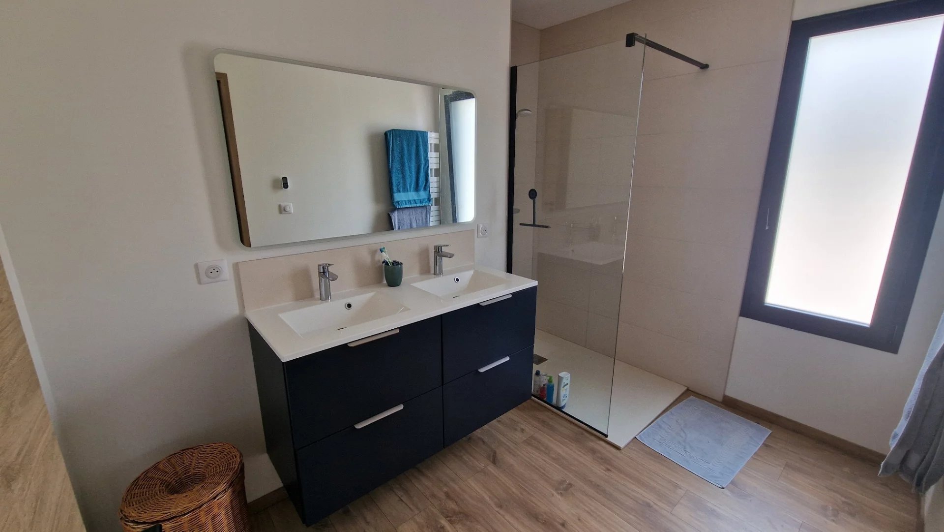 Beautiful villa (225m2) and office (120m2) built in 2017, set in a beautiful wooded park (3197m2), on the edge of a popular village just 10 minutes from Carcassonne. With a...