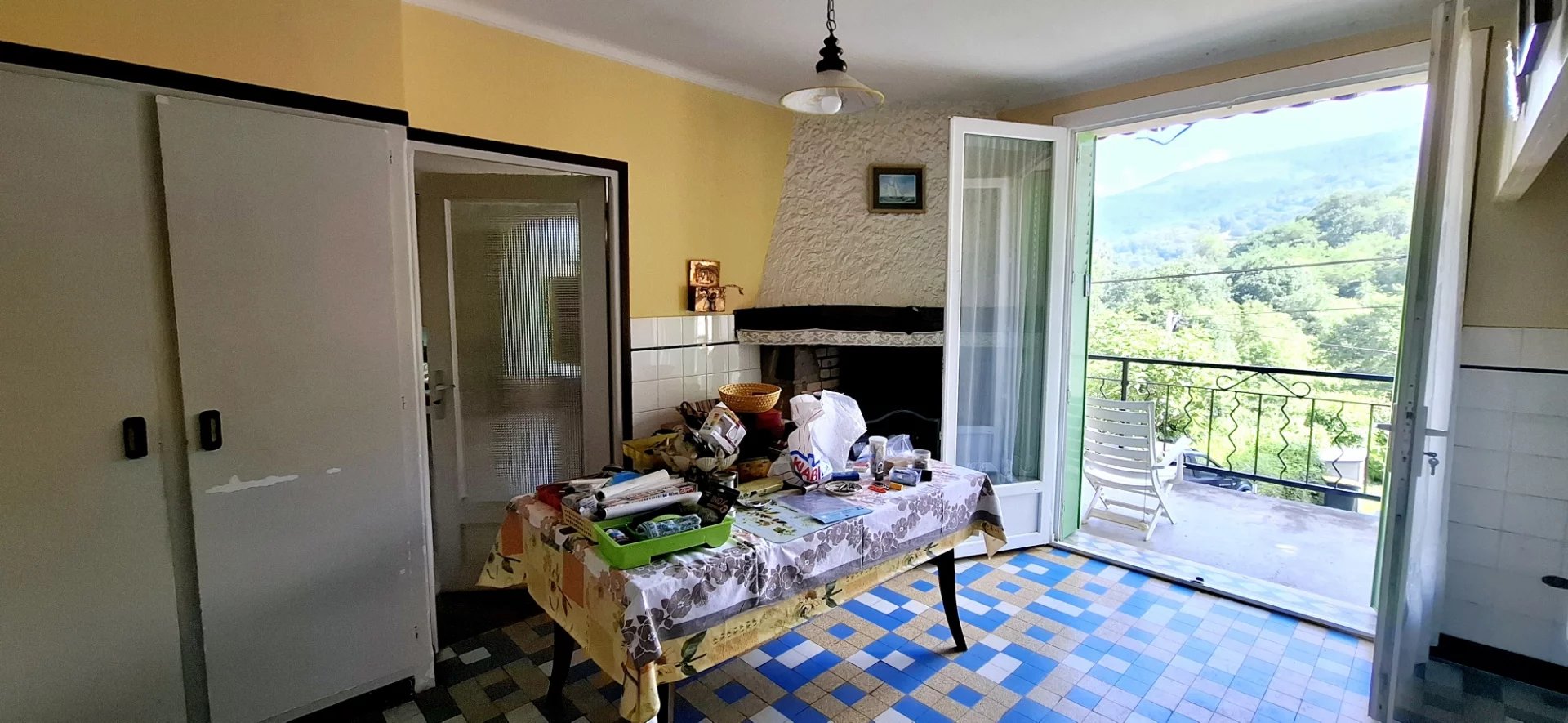 Country house of 194m2 (possibility of gîte), covered terrace and garden of 2141m2 with breathtaking views of the surrounding countryside. Ground floor: kitchen 8m2, bathroom 10m2 with toilet. Living room...
