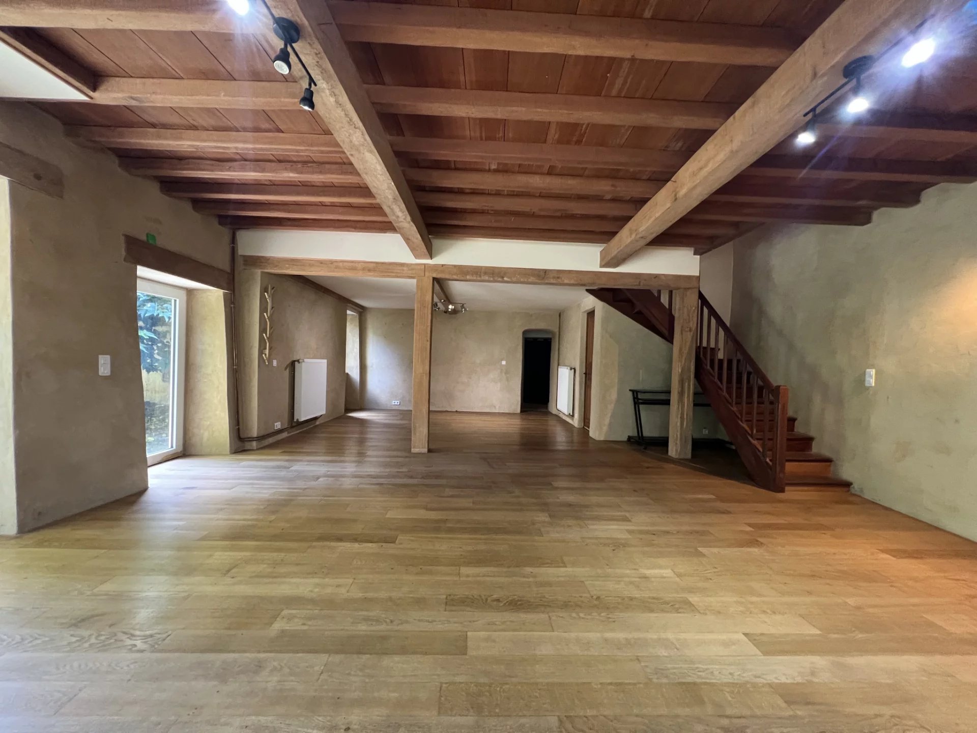 Magnificent detached house of 172m2 with large garage and swimming pool on a plot of approximately 2700m2, located in the Lèze Valley. Garden level, day side: living room 49.5m2 with...