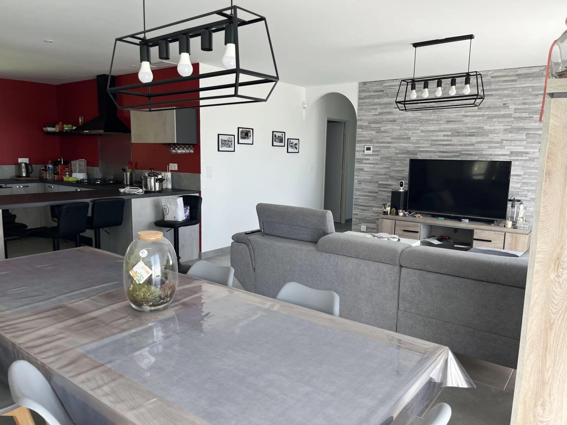 Single storey villa from 2014 with a living area of 96m2 plus converted storeroom/garage on a plot of 828m2 Living room-equipped kitchen 49m2 giving access to a pretty terrace with...