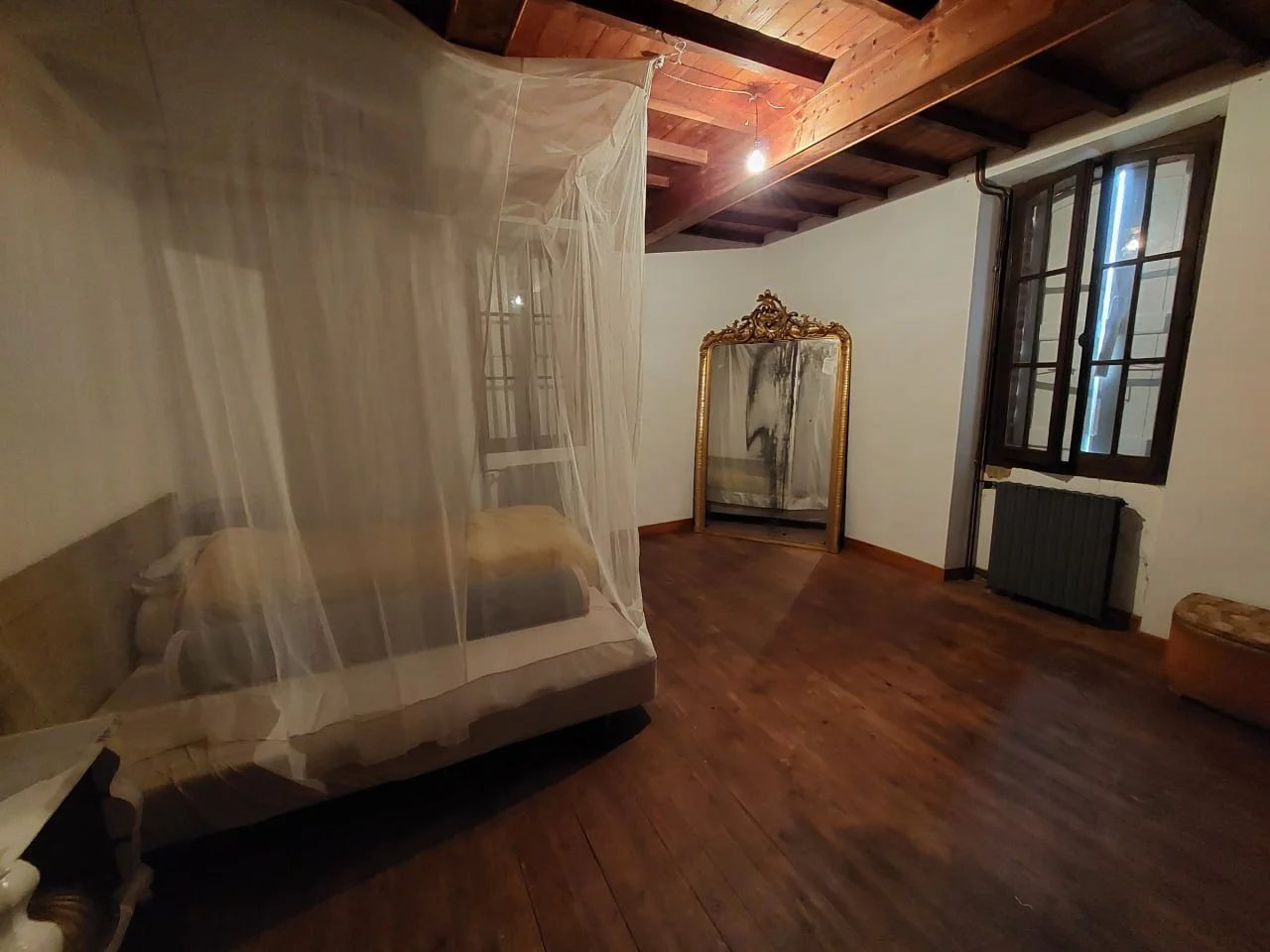 The front garden is decorated with old trees, including an imposing lime tree. Some grass terraces have been created to have a view of the peaks of the Pyrenees. On the land there is a small canal that splits the land into two parts and where there is a small bridge to get to the lower part. Many trees on the site where you will be woken up in the morning by the songbirds that gratefully make use of this almost still life.