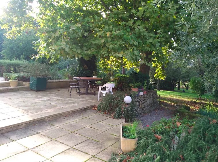 Outside: To the front of the property there is a large south facing terrace (162.5m2) which overlooks the park (2900m2). The garden is made up of mature trees and pretty Mediterranean plants. The trees give shade to the terrace in summer. In total there are 12178m2 of land which includes a large vegetable garden and 2 wells.