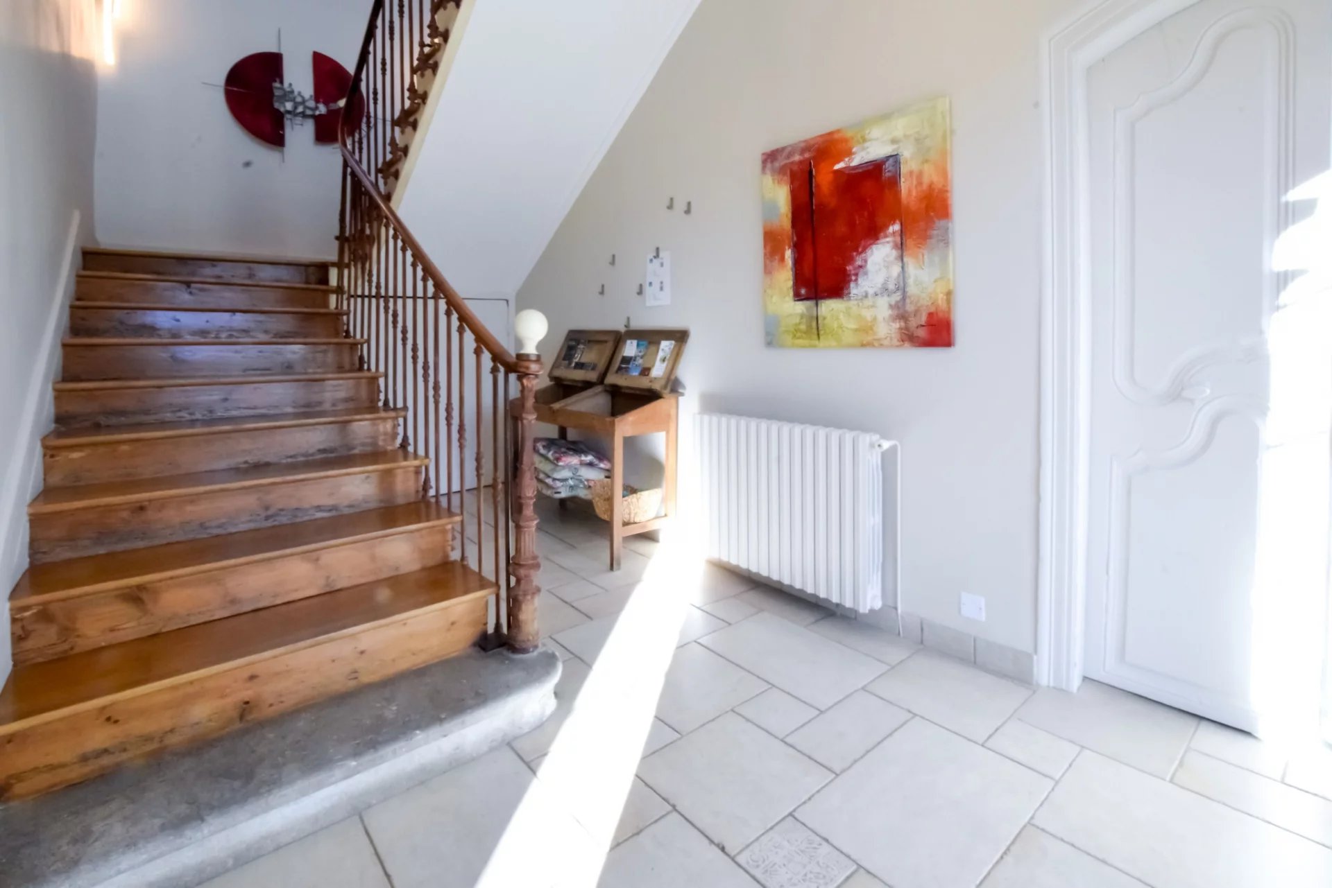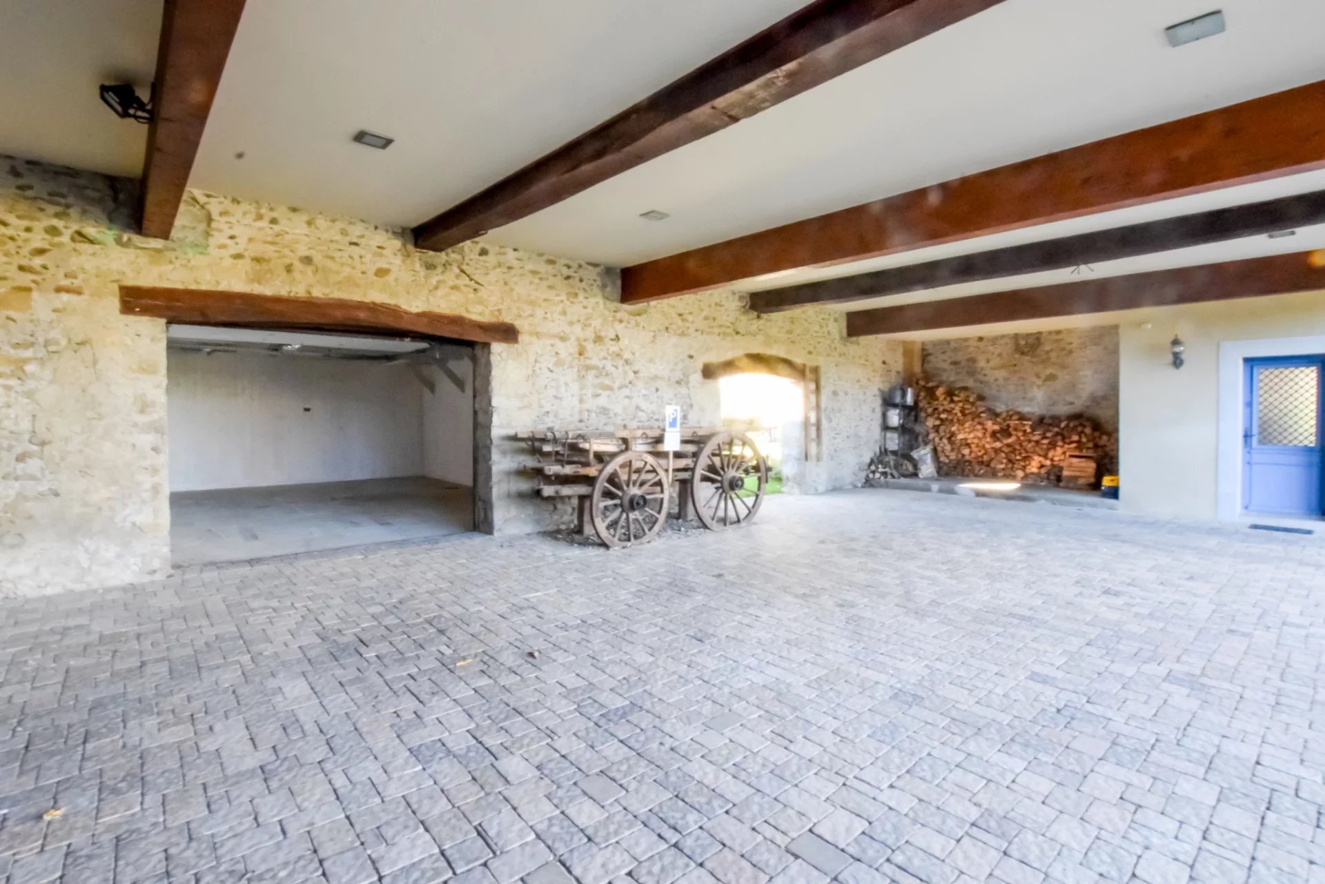 The barn is partially converted: below it an atelier of 33 m2, a wine cellar, a 48 m2 garage and 125 m2 covered parking. A staircase leads to a luminous 40 m2 studio (wood floor) with abundant natural light.