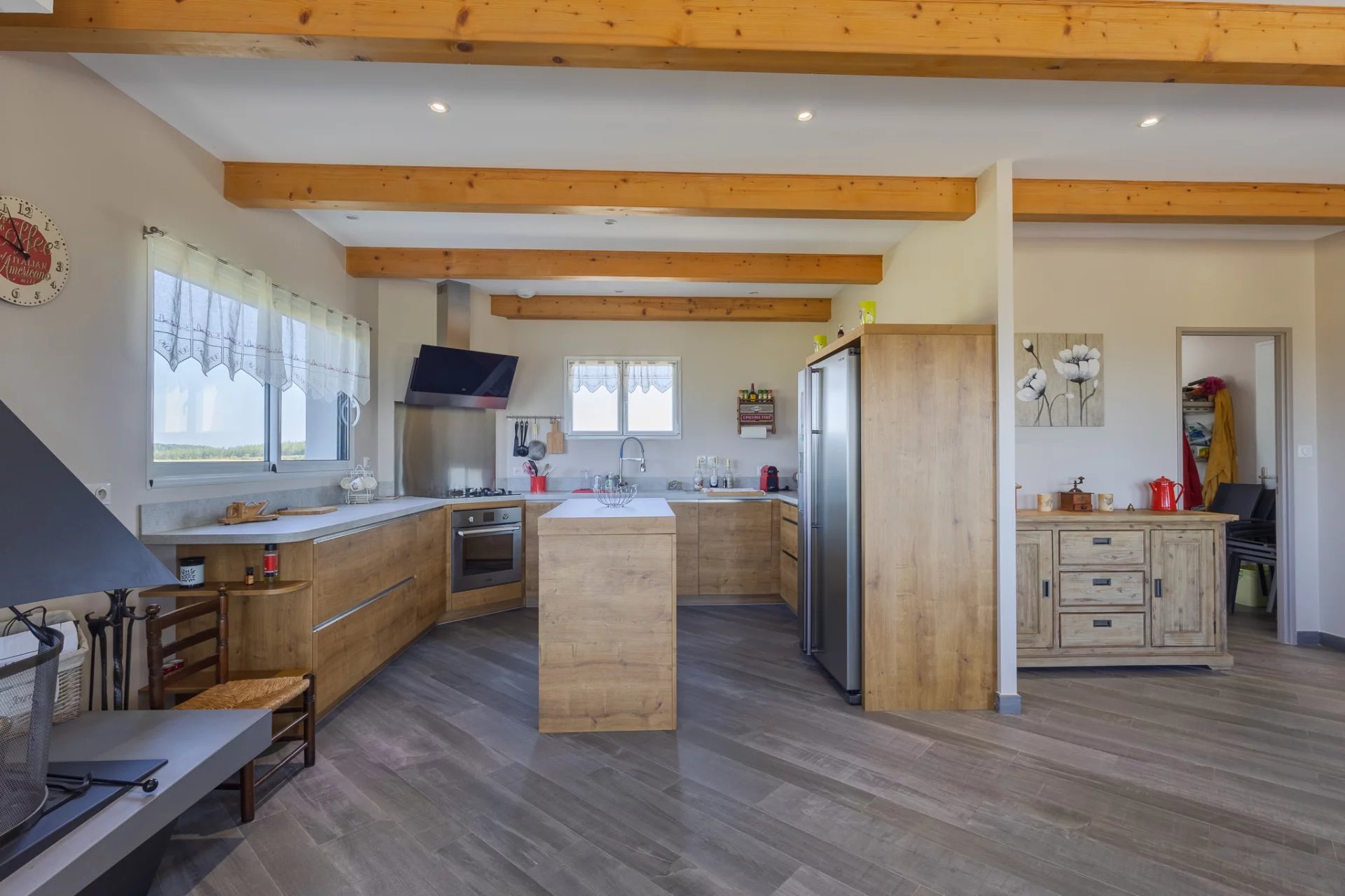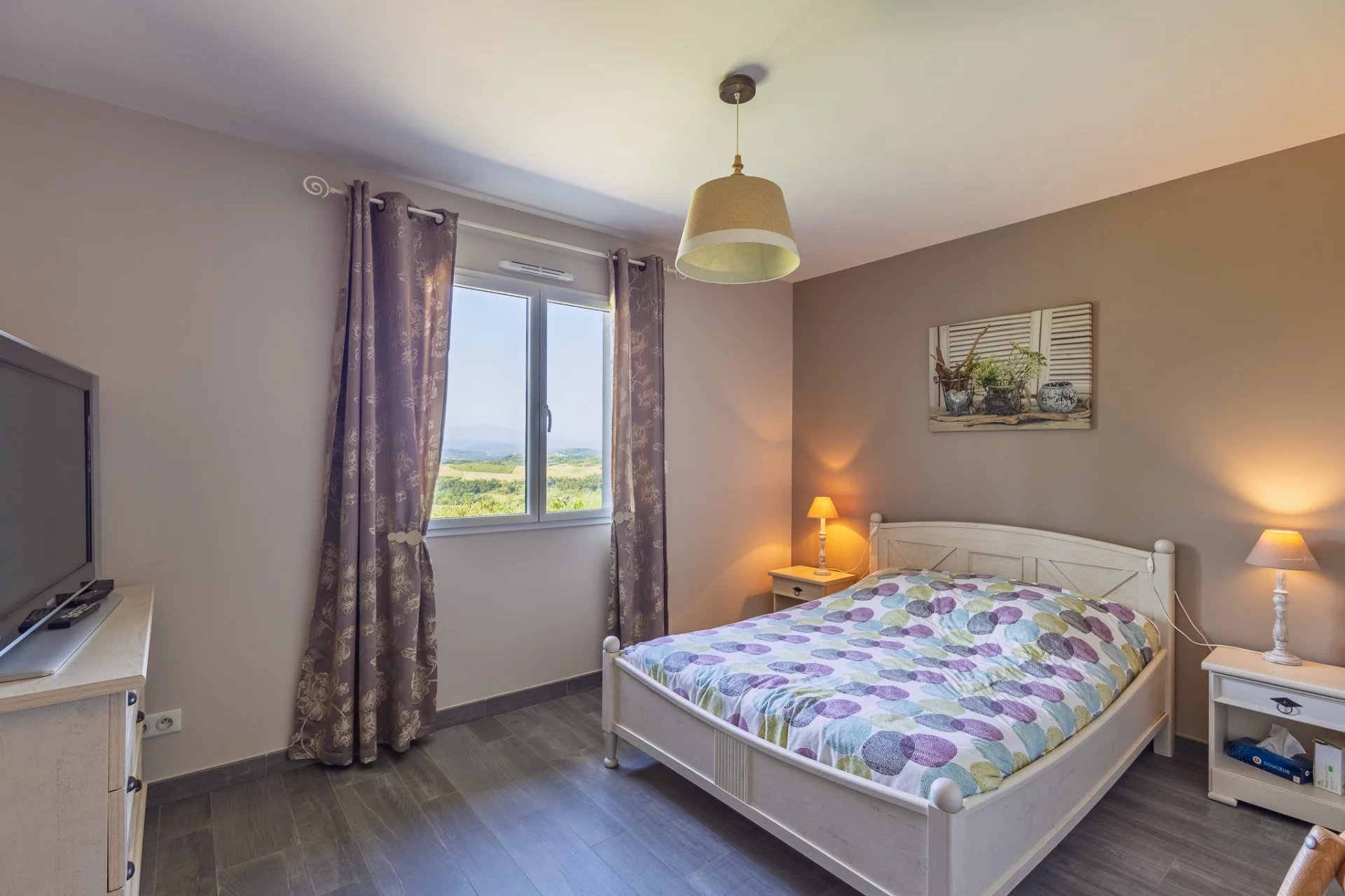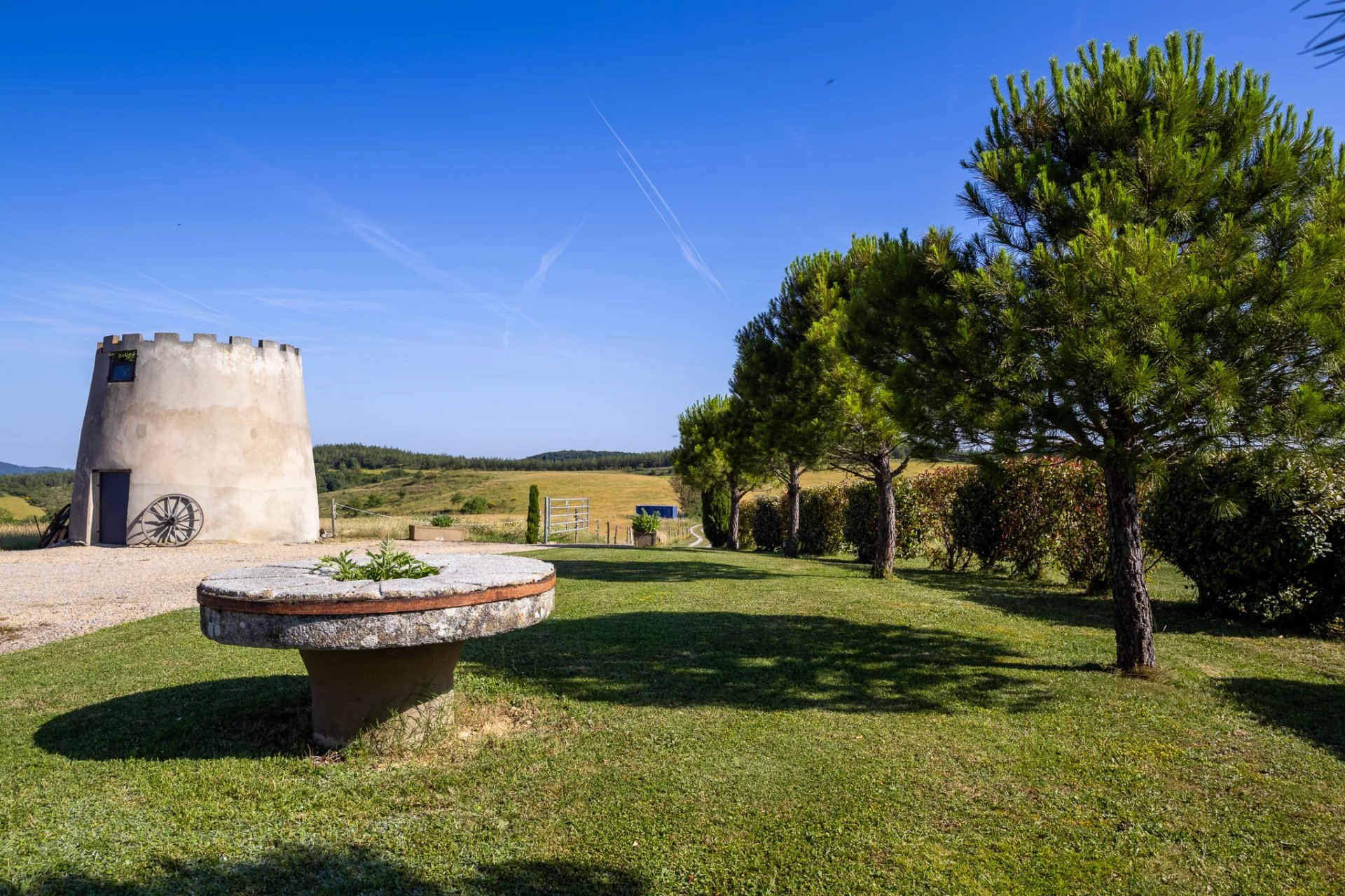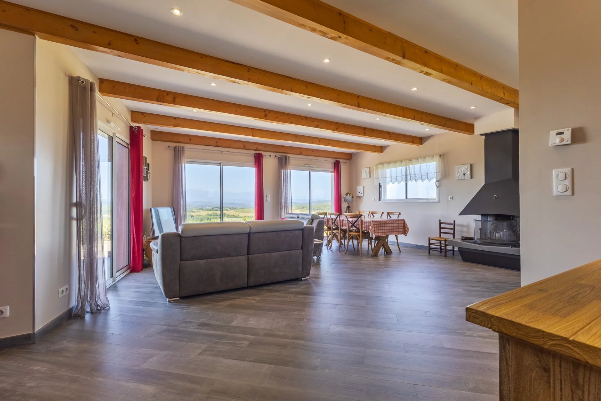 In the heart of a preserved natural environment, discover this characterful 110 m2 property, nestled in the countryside, with spectacular views of the mountains and surrounding countryside. This property also seduces with its brightness, its panoramic terrace, its 10 hectares of meadows and its old stone mill offering great potential. The main house opens onto a spacious, bright 47 m2 living/dining room, extended by a fully equipped 10 m2 kitchen. Thanks to large bay windows, the living room is bathed in light and offers an exceptional panorama. A traditional fireplace adds a warm and authentic touch. The sleeping area consists of three comfortable bedrooms measuring 12 m2, 12 m2, and 11 m2, perfect for accommodating family or guests. A spacious 11.5 m2 laundry room completes the functional layout. The bathroom features built-in closets, and the separate toilet is equipped with a washbasin. Outside, a large panoramic terrace invites you to fully enjoy the beautiful weather. The property extends over 10 hectares of unoccupied meadows, offering privacy, peace, and an idyllic setting for nature lovers or those with agricultural, equestrian, or tourism projects. An old stone mill, steeped in history, completes this rare ensemble and opens the way to various development or enhancement projects. The property enjoys an ideal location: just 15 minutes from Mirepoix and its shops, 10 minutes from Bellegarde-du-Razès, 1 hour from Carcassonne, and approximately 1 hour 15 minutes from the Mediterranean coast. It boasts an exceptional panoramic view, a preserved natural setting with no overlooked views, a mill offering great potential, and easy access to amenities and major roads. A rare property on the market.
