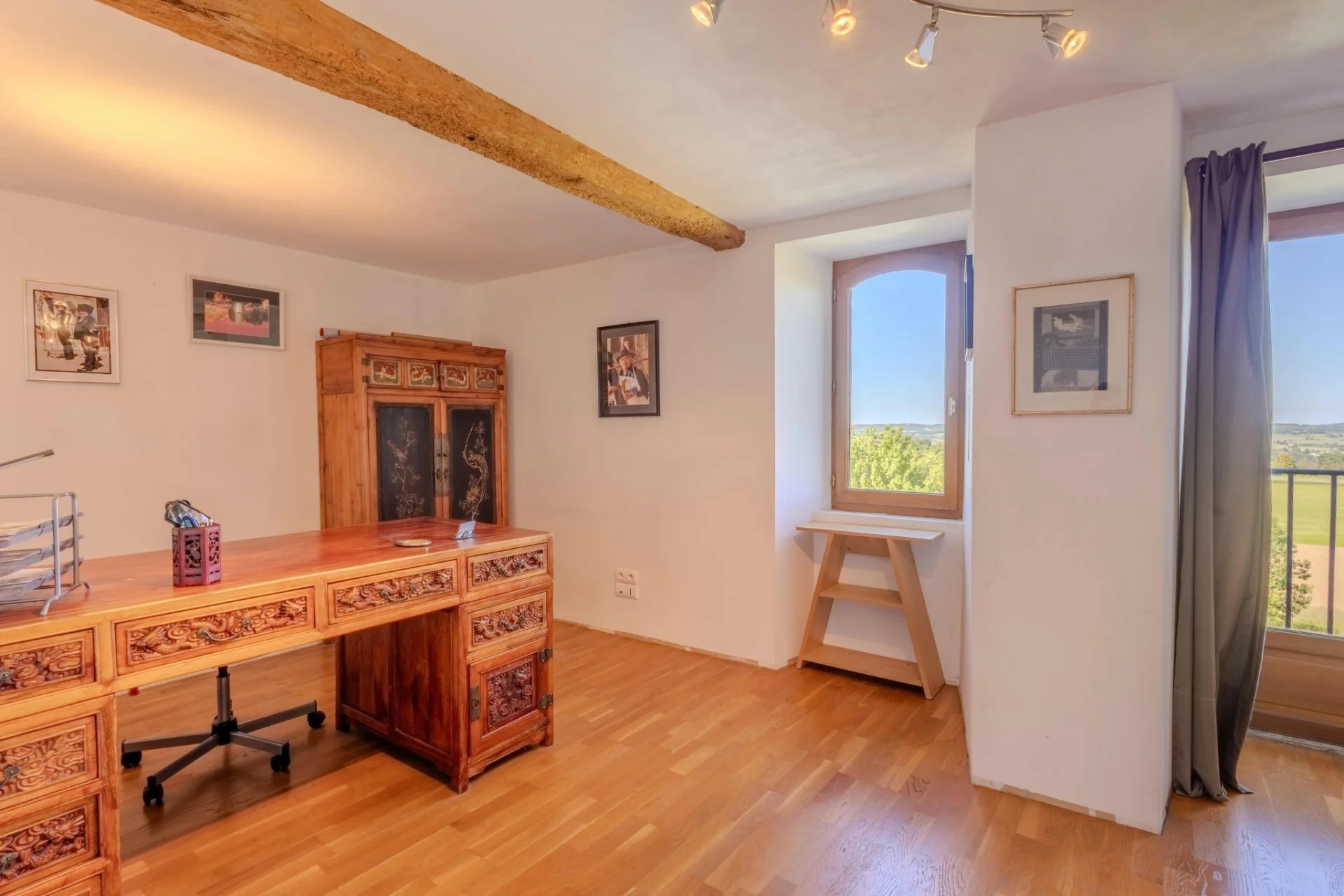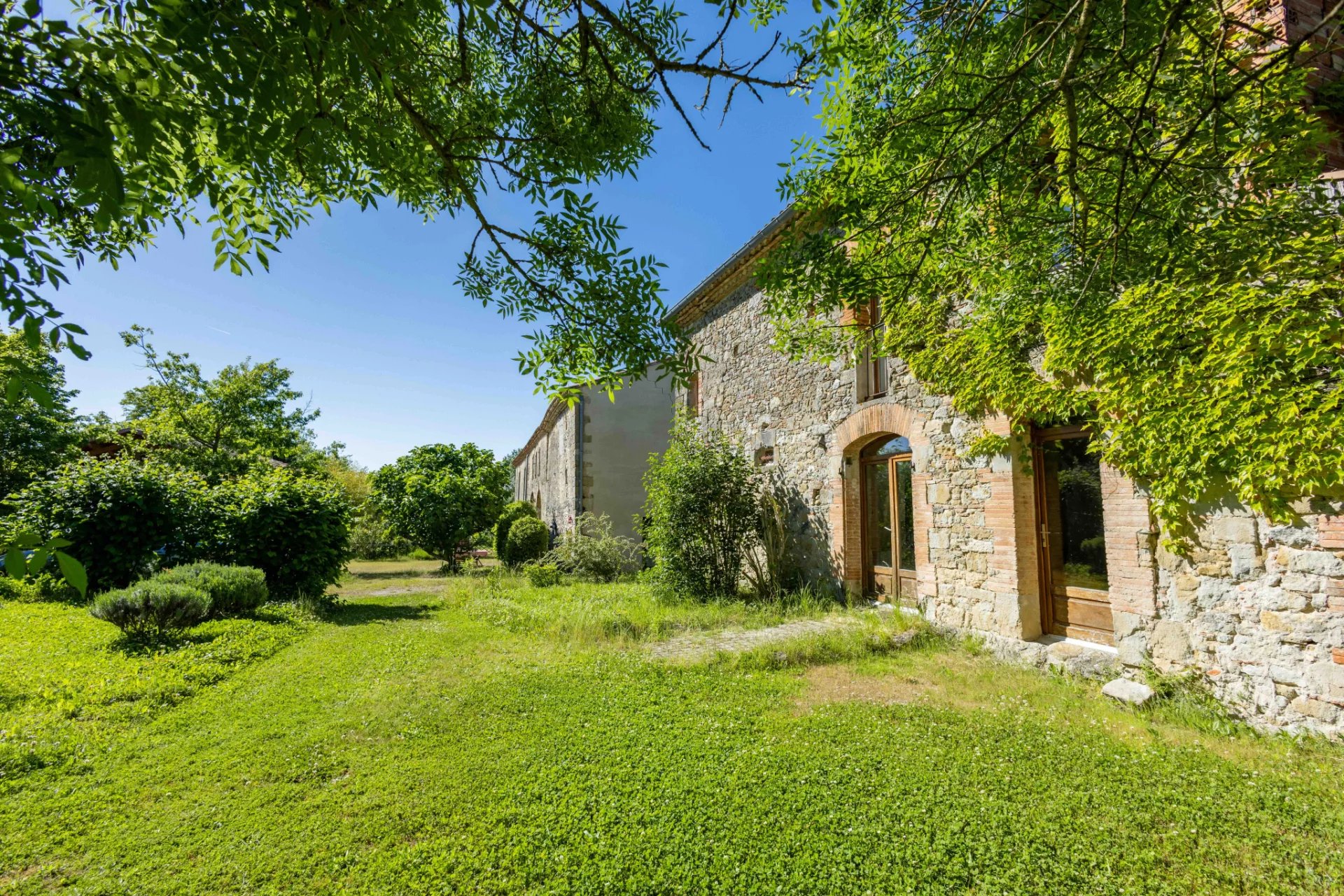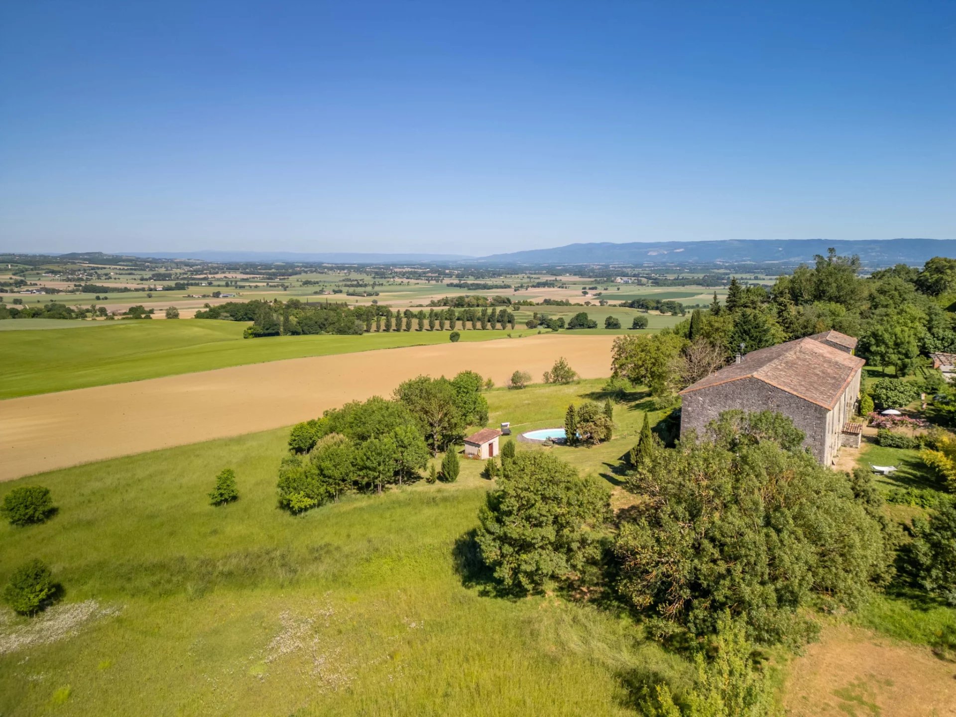 The property overlooks its wooded land of approximately 3 hectares with a swimming pool and enjoys wide views to the north over the Montagne Noire and the rolling hills of Lauragais.