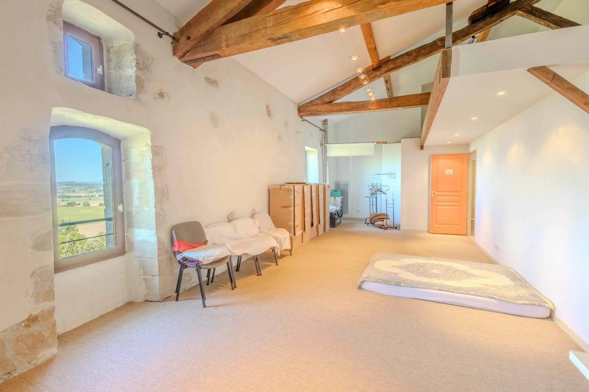 Second adjoining residence of 350 m2: like a blank canvas, this part of the property is waiting to be finished and offers:On the ground floor: loft-style living area (170 m2) already featuring a kitchen corner, a laundry room, and 2 WCs that could be converted into a bathroom, potentially accessible to people with reduced mobility.First floor: 3 spacious rooms, approx. 50 m2 each, adaptable to your needs: bedrooms, studios, workshops. A 6 m2 shower room with WC has been installed.