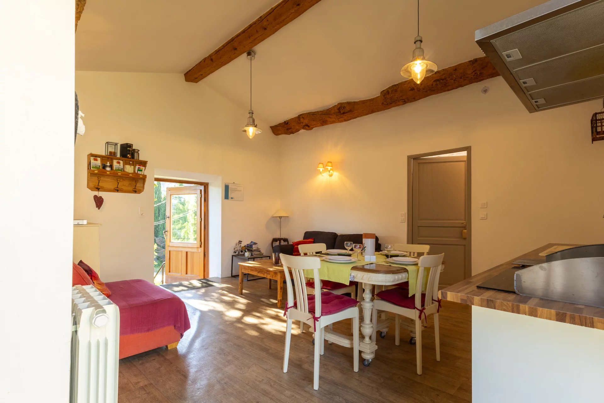 Gîte 2 : Terrace, kitchen, living room, 2 bedrooms with en-suite bathrooms.