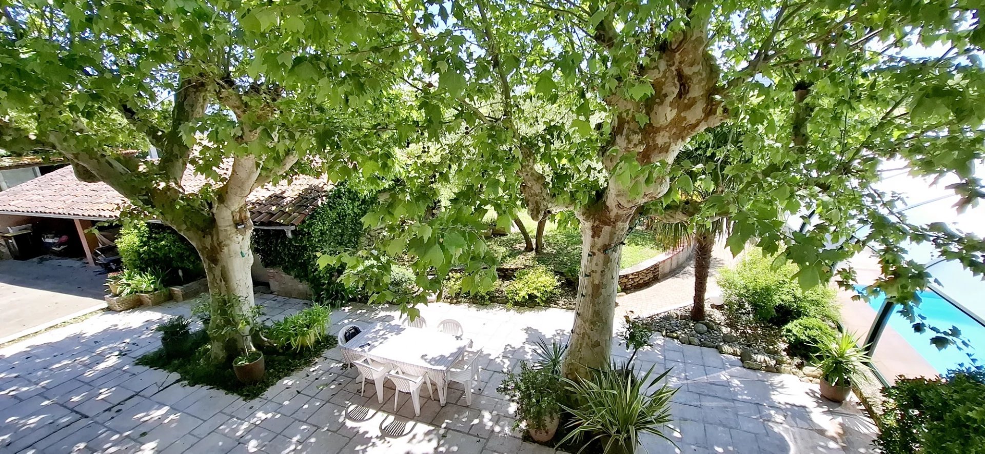 It will be pleasant to linger in the shade of the plane trees, facing the main house, during a convivial meal on the large paved terrace.