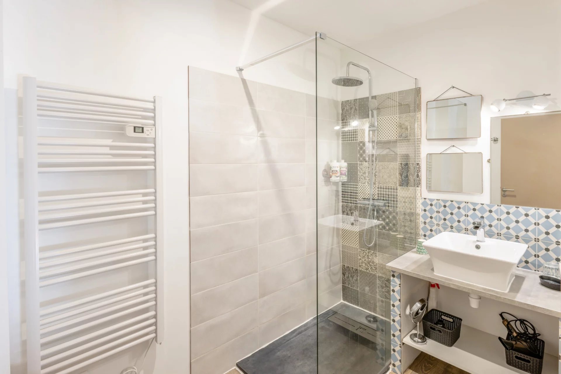 The main house offers 135 m2 of living space on 2 levels with 5 bedrooms, 4 bathrooms, a kitchen, a living room and a dining room. The top floor, also approximately 135 m2, can be converted if you wish for even more space.