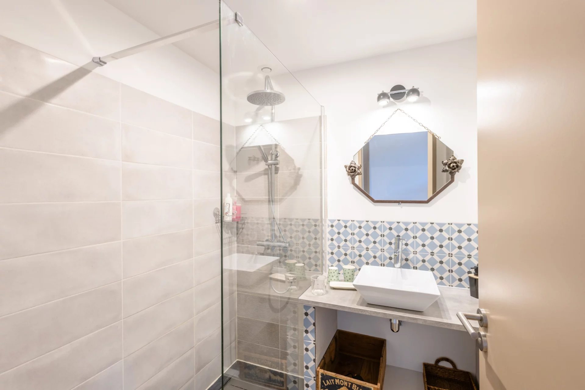 The adjoining house, part of the property, offers more than 180 m2 on 3 levels: 4 bedrooms, 3 bathrooms, kitchen, living room and a beautiful south-facing terrace of 53 m2.