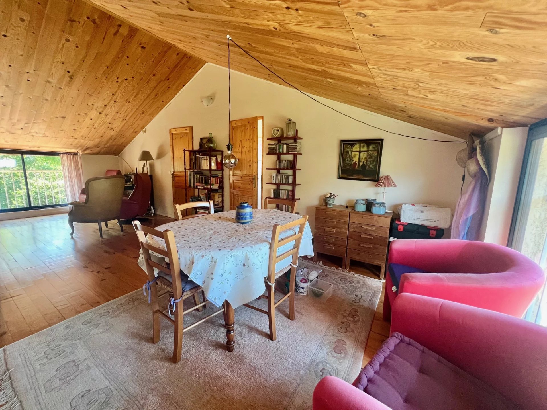 Upstairs, there is a large open-plan room of 26.5 m2 that could be used as a workshop or second living room, as well as three additional bedrooms of 11.8 m2, 10.8 m2 and 9.8 m2, ideal for accommodating family or friends. There is also a bathroom of 8 m2 and a WC.