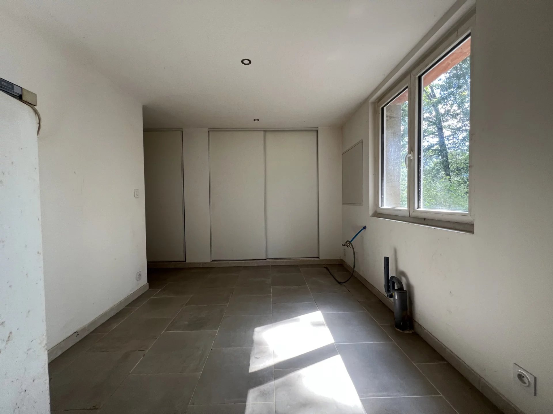 An adjoining hallway leads to the boiler room of 10.47m2 with access to the rear to a driveway for cars and external wood storage as well as a utility room of 13.82m2. There is another very large room which needs to be finished, it only needs some electrical elements and the skirting boards. This room was going to become a games room with bar but could easily be a ground floor bedroom of 31.56m2 or even a separate gite. There is then a former kitchen of 16.52m2 which could become a bathroom or kitchen for a gite with a little work. This property offers many possibilities of development.
