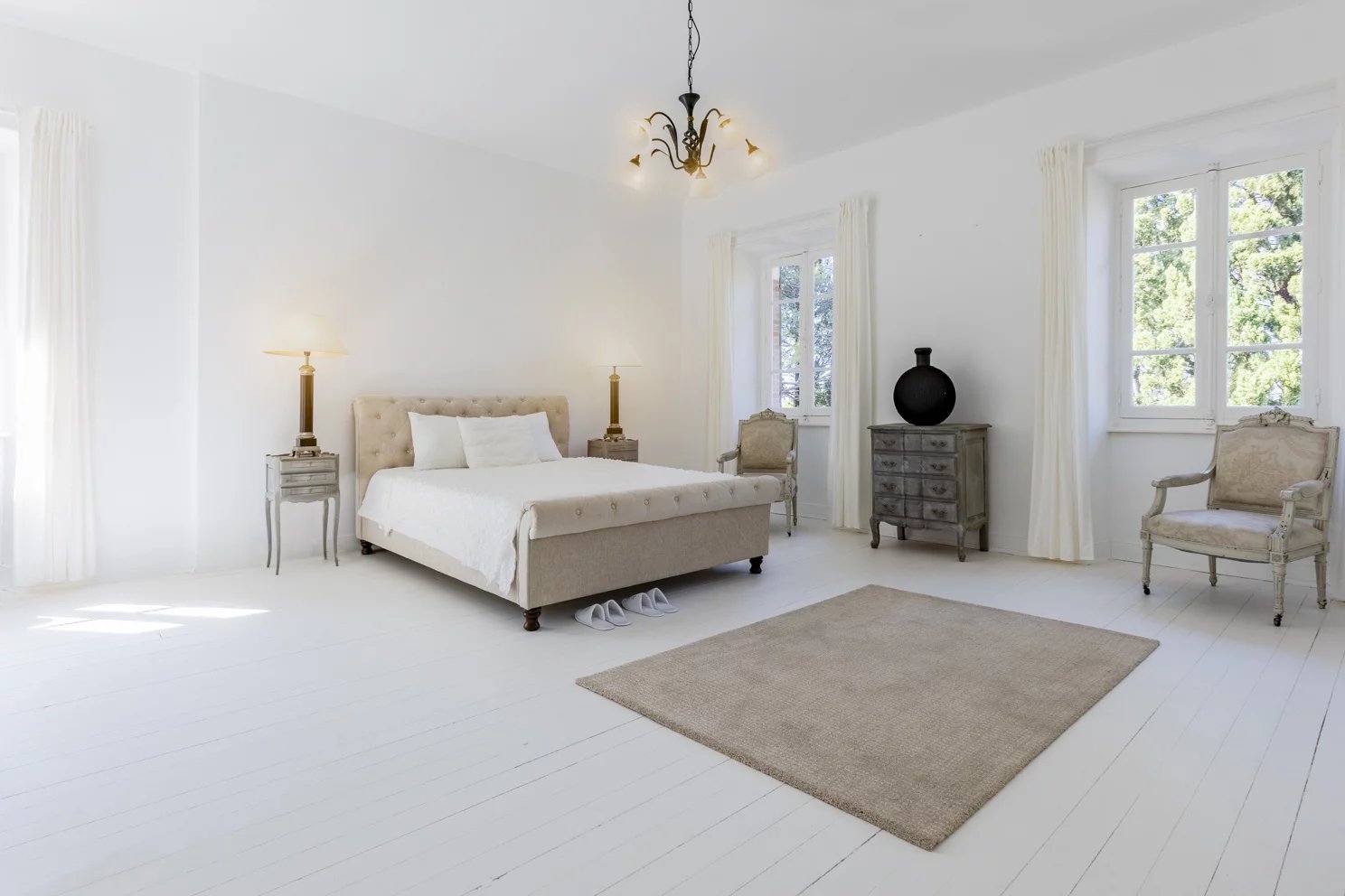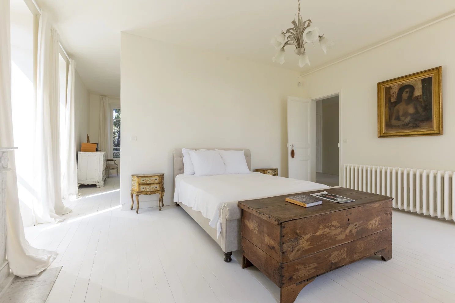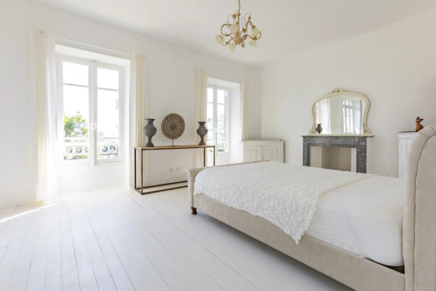 Renovated with a refined, minimalist spirit, the house has preserved and enhanced its period features: marble fireplaces, encaustic cement tiles, fine woodwork, ornate moldings, and a monumental staircase compose an interior worthy of the most prestigious design magazines. Light floods the home through its vast windows, highlighting the fluidity of its volumes.