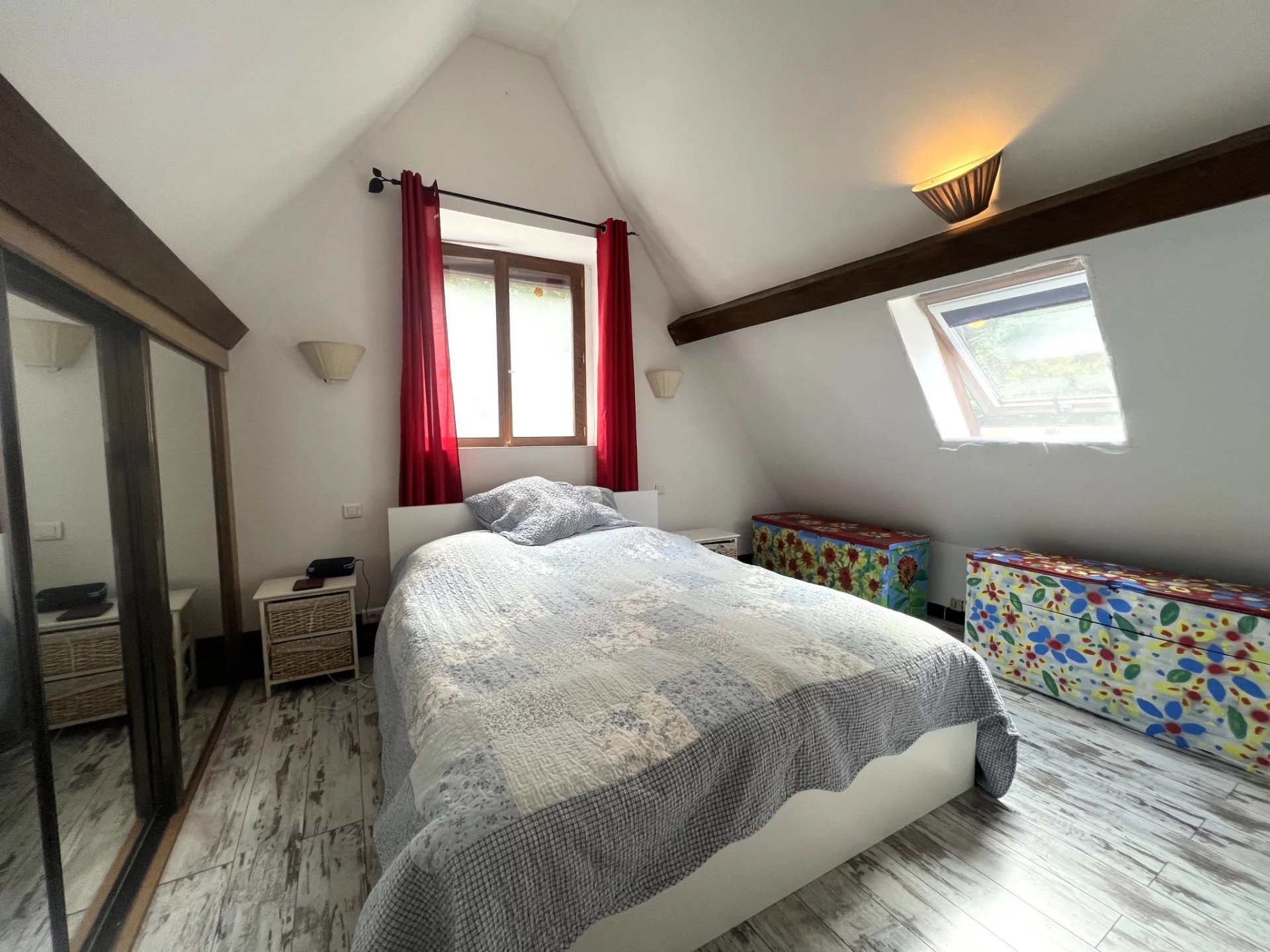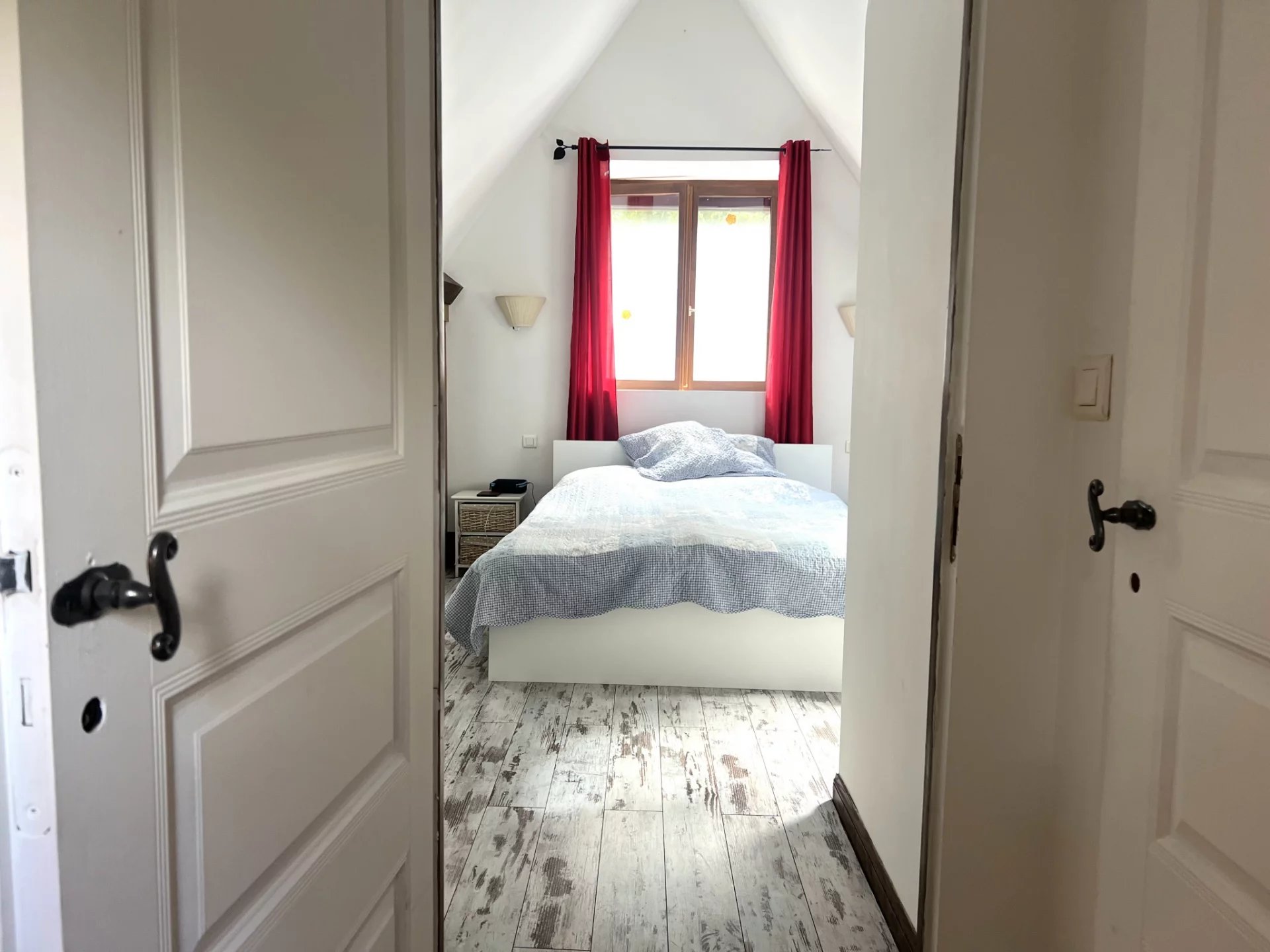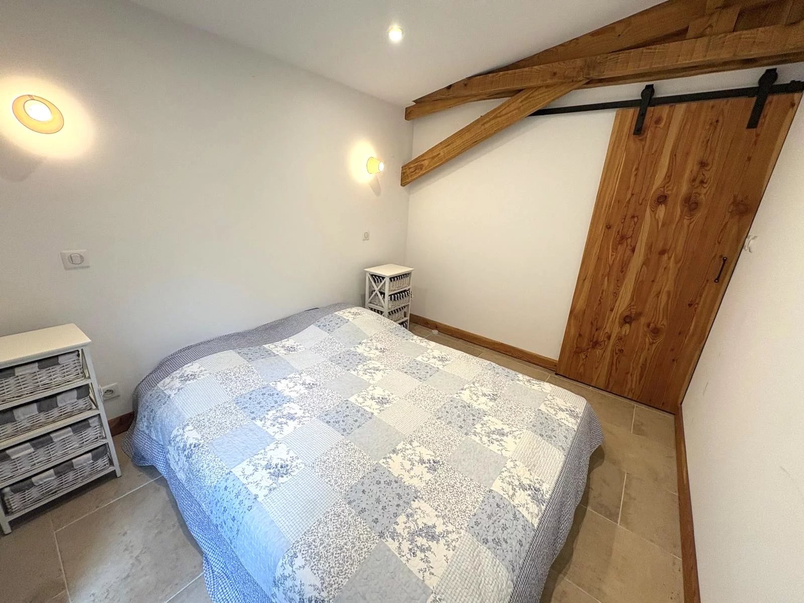 The 2-bedroom little home (86m2) welcomes you into a private paradise. The driveway leads up to the cottage, with parking for several cars. You arrive at an entrance hall with storage, opening onto a living room with a modern open-plan kitchen . Also on the ground floor, the new extension, thanks to sliding glass doors, this space offers a bright room that can be used as a living room, dining room, or a separate studio. Two sliding wooden doors reveals the modern shower room with WC and another into the guest bedroom with a private entrance from the garden, ideal for hosting guests. There is a sunny terrace which offers exterior dinning and an outlook onto the garden.