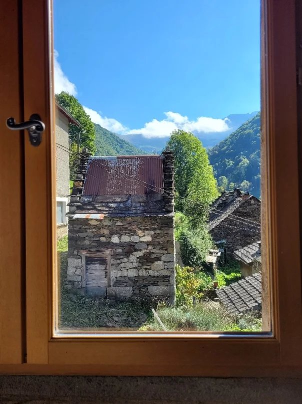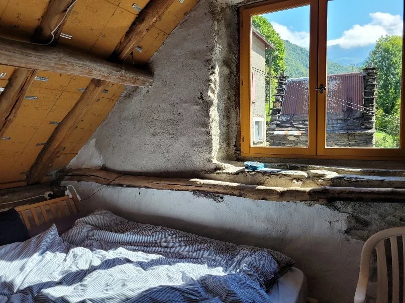 Converted barn (40m2) and small house (approx. 50m2) in need of renovation, south-facing at an altitude of 900m with beautiful mountain views, located in a mountain hamlet.