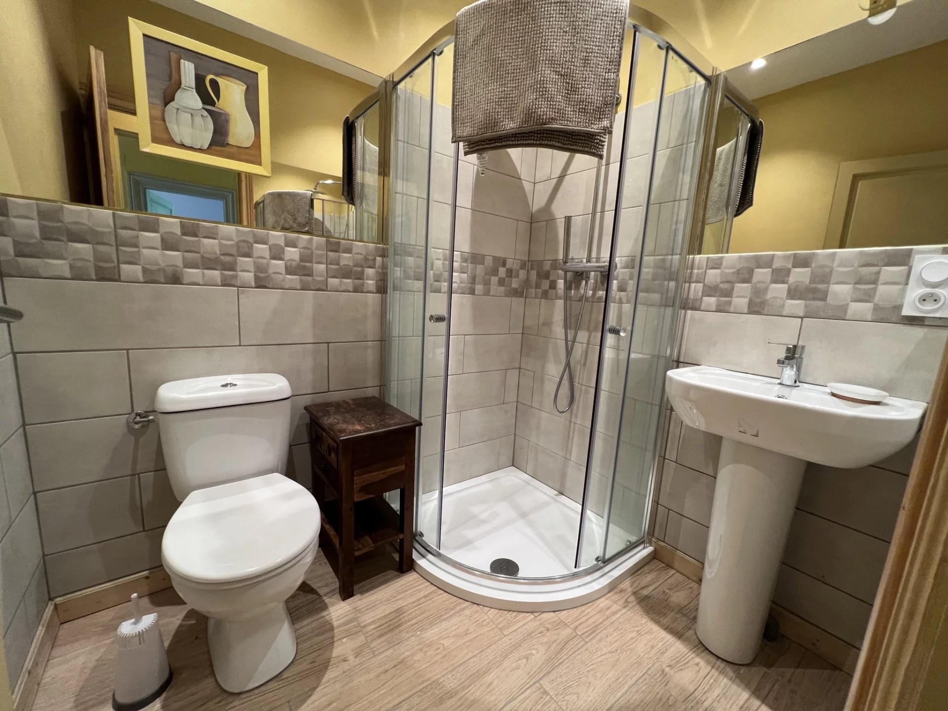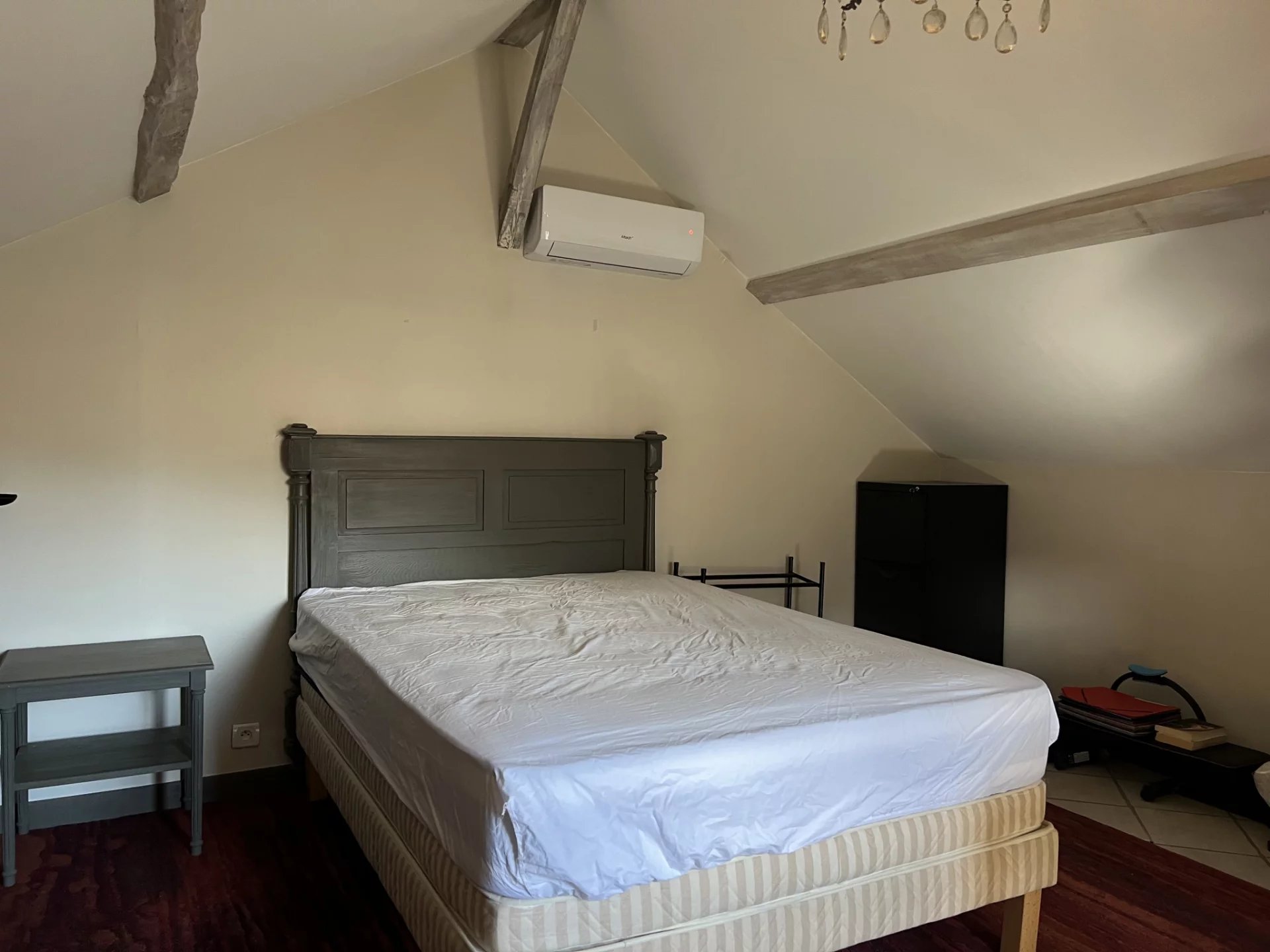 Adjacent to the main house, you'll find a guest house that is currently used as a gîte and measures 86m2. This space offers three bedrooms and a bathroom. Ideal for hosting visitors or generating rental income. The guest house offers a comfortable and private retreat and is currently rented for €550 per month. The Gite has recently been improved for its energy efficeny rating. The electric raditors have been replaced by 3 heat pumps.
