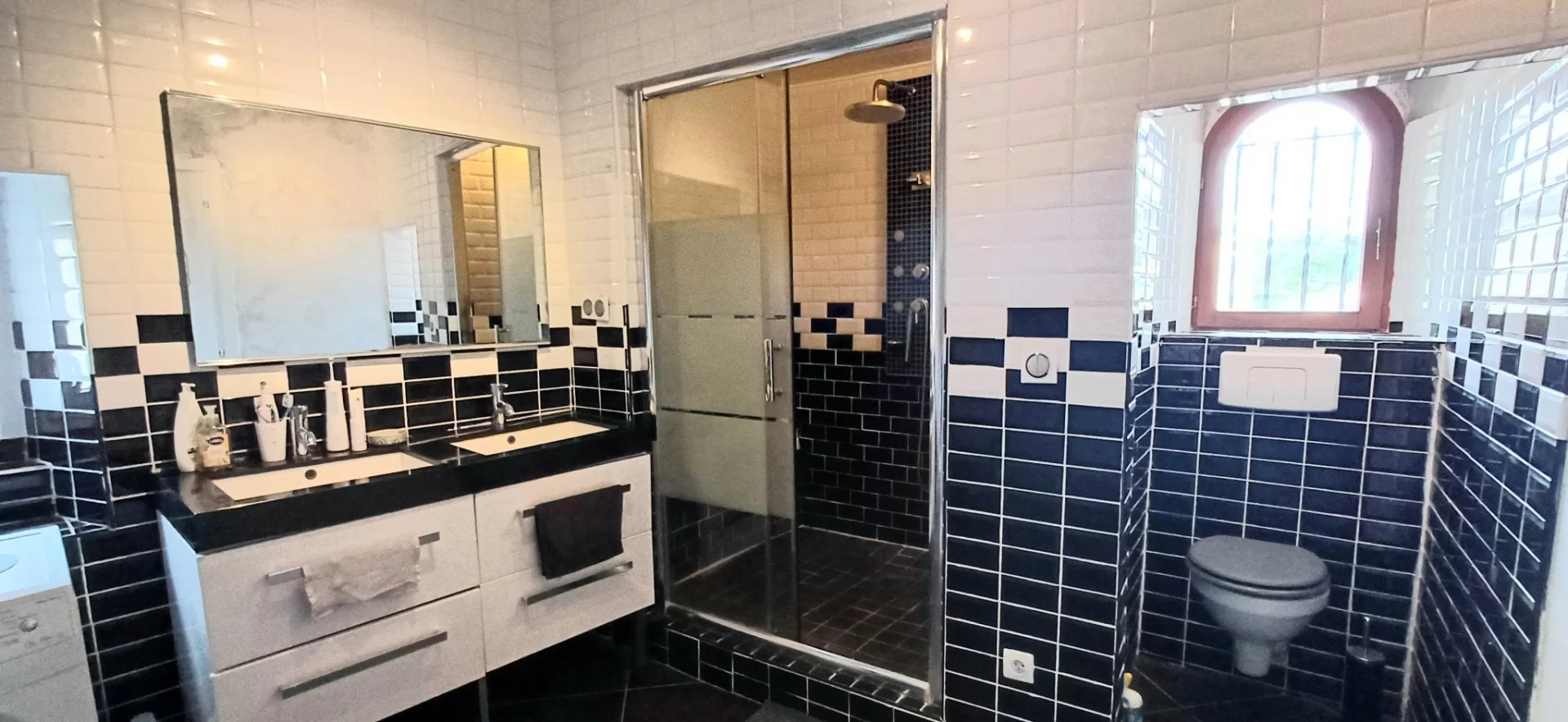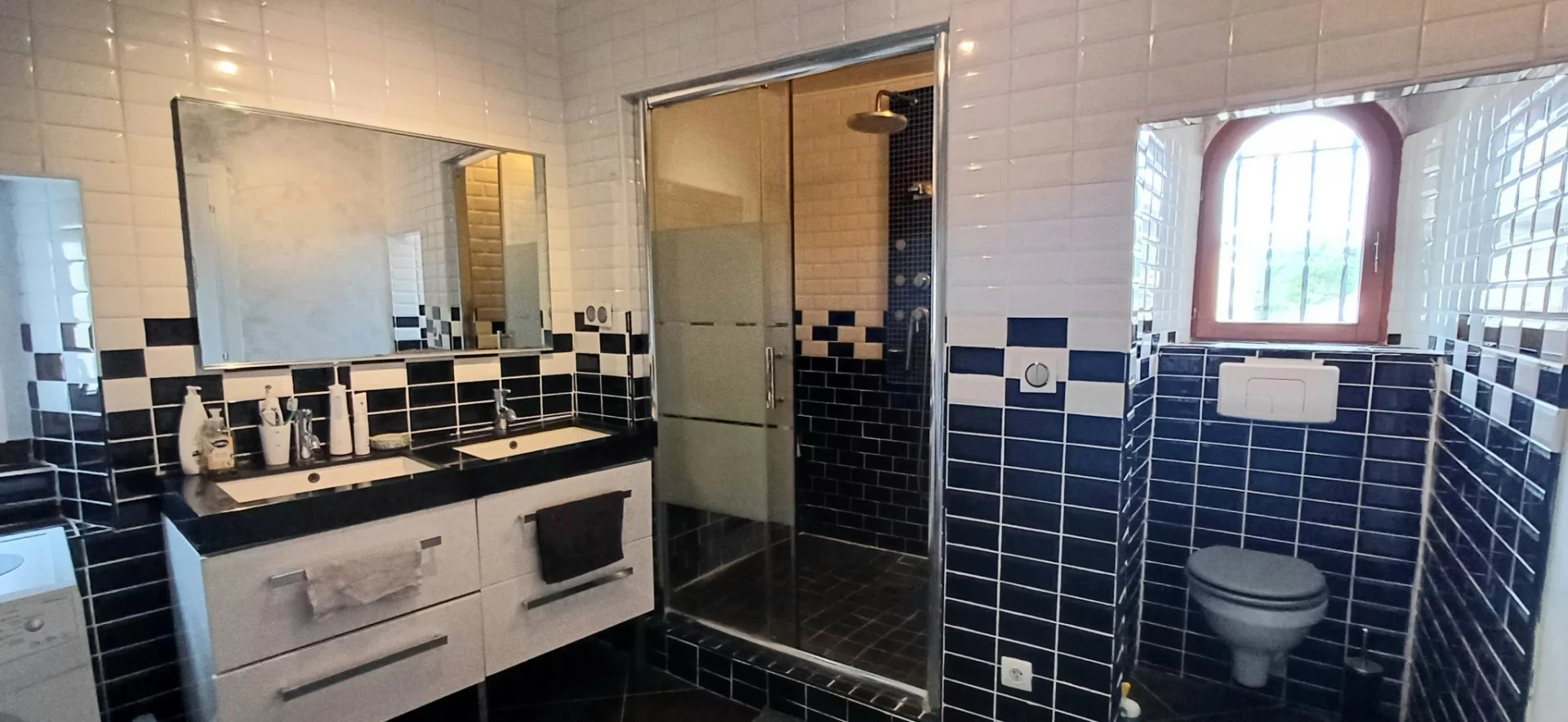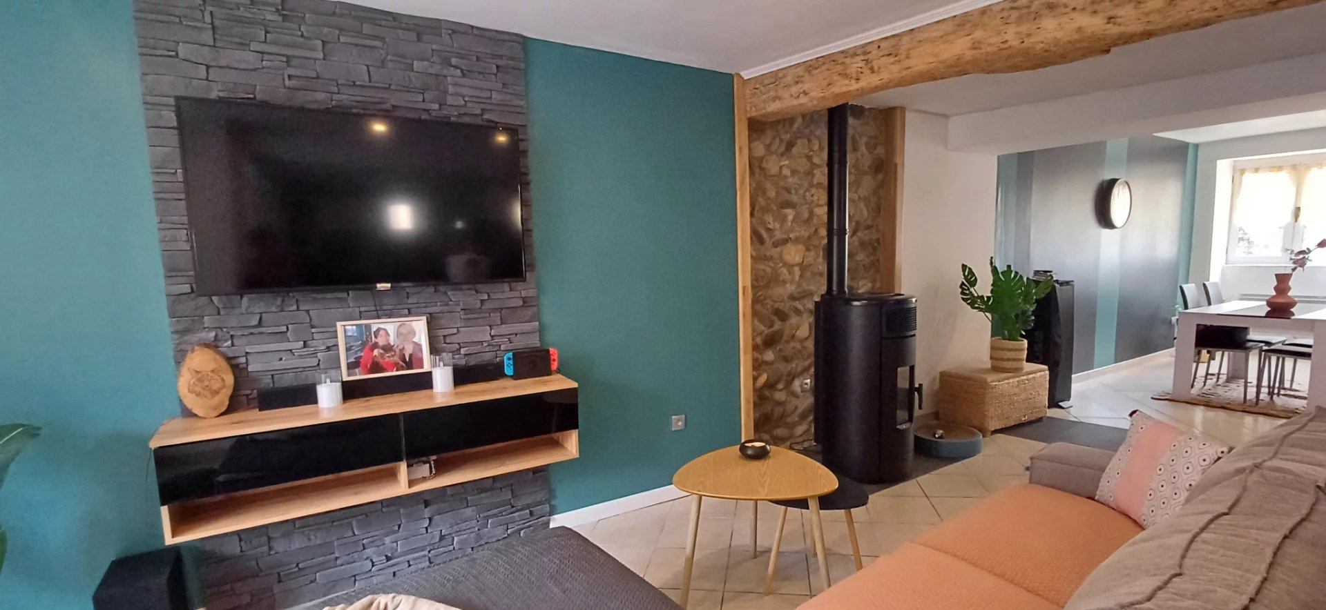 On the ground floor, you will find a pleasant 30 m2 living room including a bright living room equipped with a modern pellet stove, a friendly dining room as well as an open kitchen of 18 m2, tastefully furnished and opening directly onto a private courtyard. A toilet completes this level.
