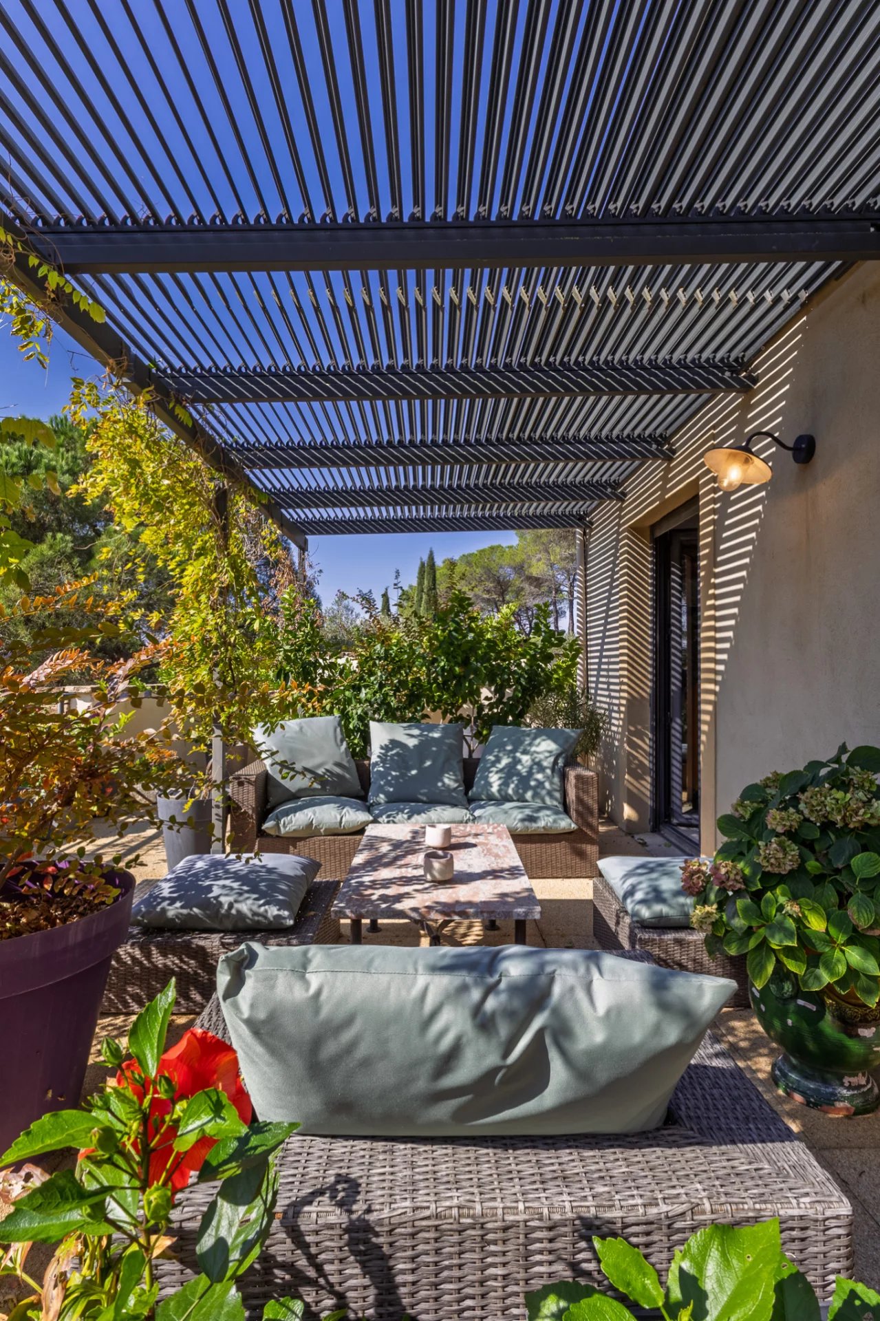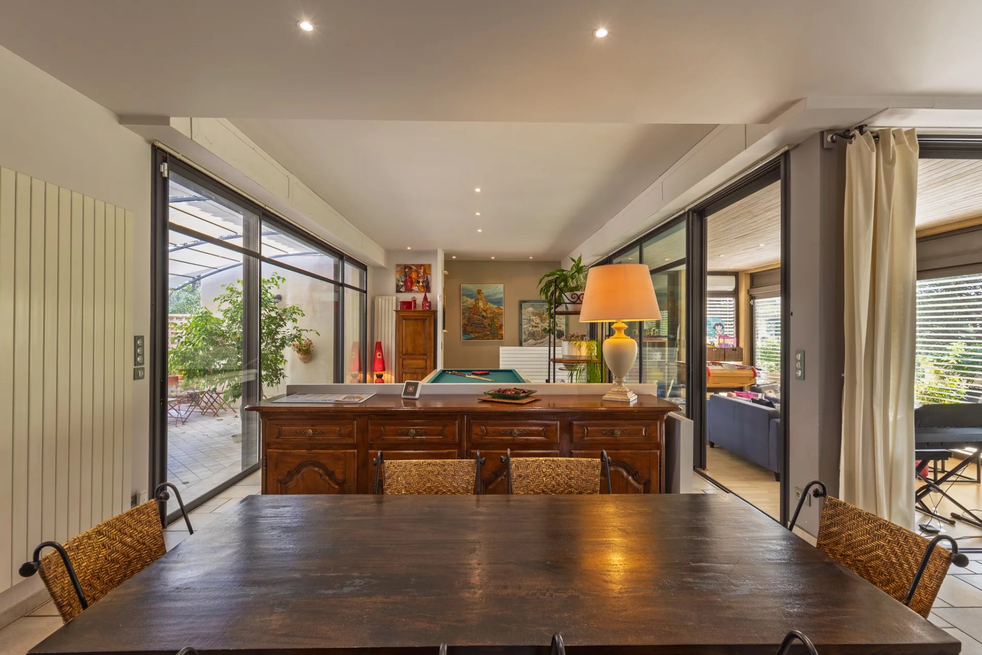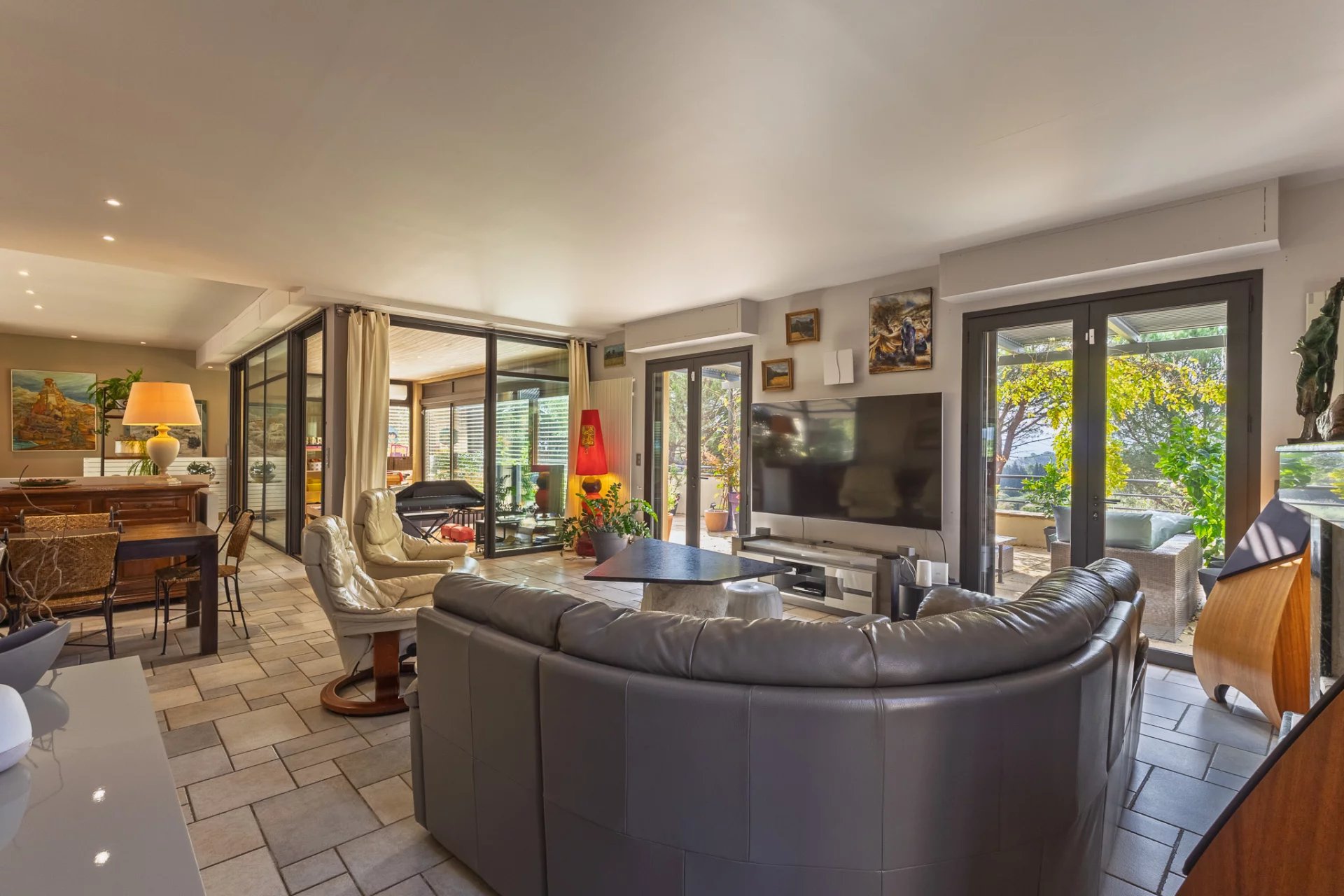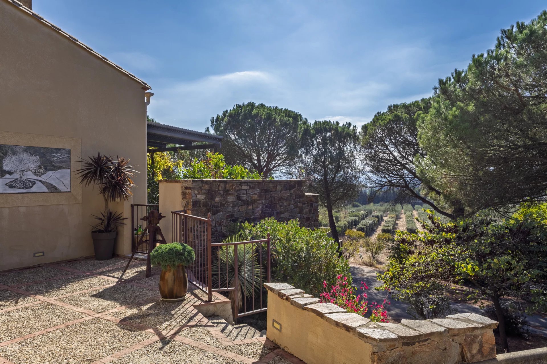 Located on a green hill between Carcassonne and Trèbes, this elegant architect-designed house offers panoramic views of the valley, vineyards and the Corbières. Set on 30,880 m2 of landscaped grounds, the estate is planted with olive trees, fruit trees, and truffle oaks, lending it a rare and authentic character. The property offers approximately 320 m2 of light-filled living space, with expansive terraces perfect for enjoying the Mediterranean climate. The interior includes a large living area, a fully equipped kitchen opening onto the covered terrace, four bedrooms with bathrooms, a wine cellar and a garage. The meticulously landscaped garden features majestic pine trees and a secluded pool area. A well with an automatic irrigation system ensures the grounds are maintained year-round. A rare property, ideal for nature lovers, tourism projects or horse enthusiasts, just a few minutes from Carcassonne and the Canal du Midi. Strengths: Exceptional location between Carcassonne and Trèbes. Unobstructed view of the Corbières and vineyards. Land of 30,880 m2 with olive trees, fruit trees and truffle oaks. Swimming pool, wine cellar and panoramic terraces.