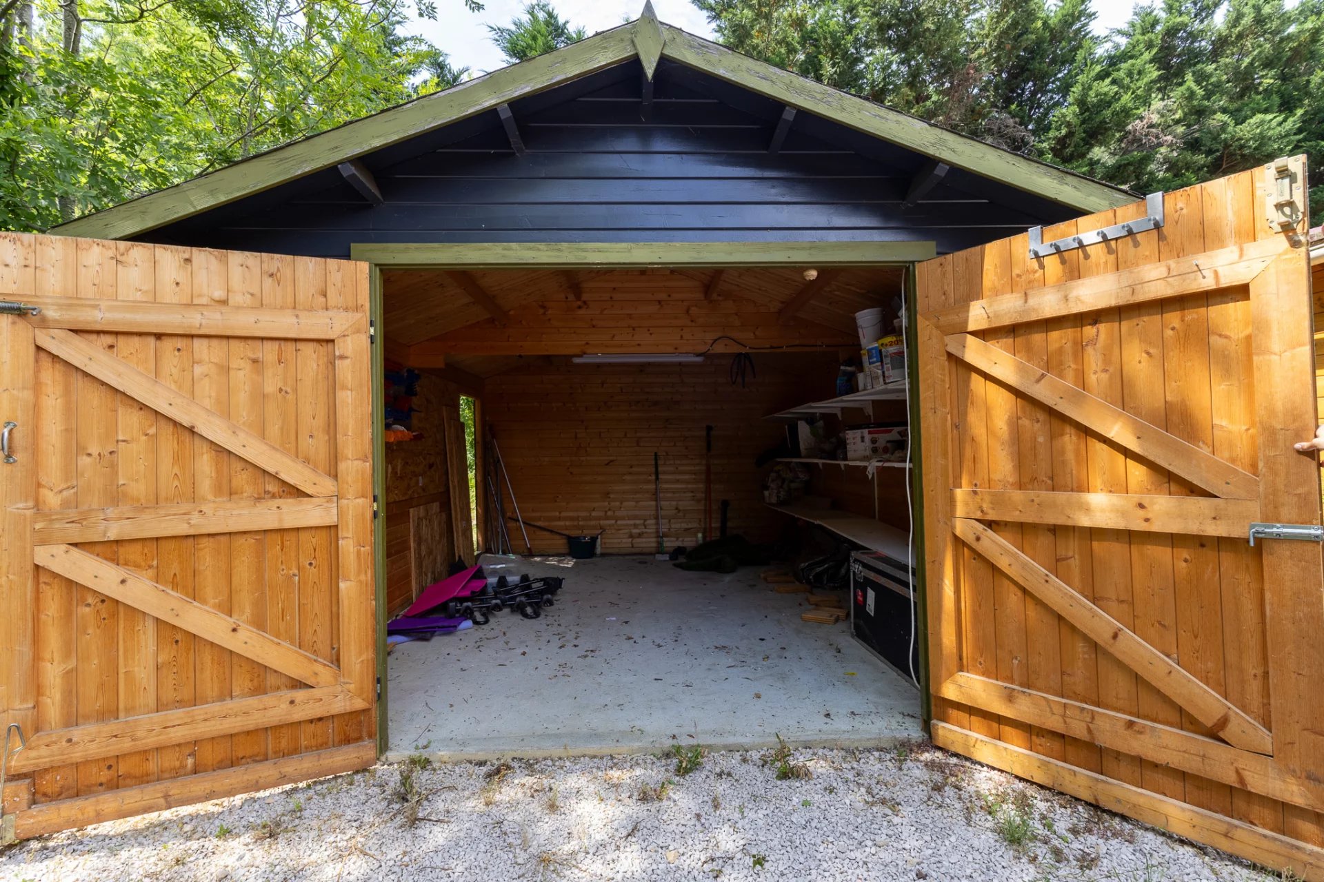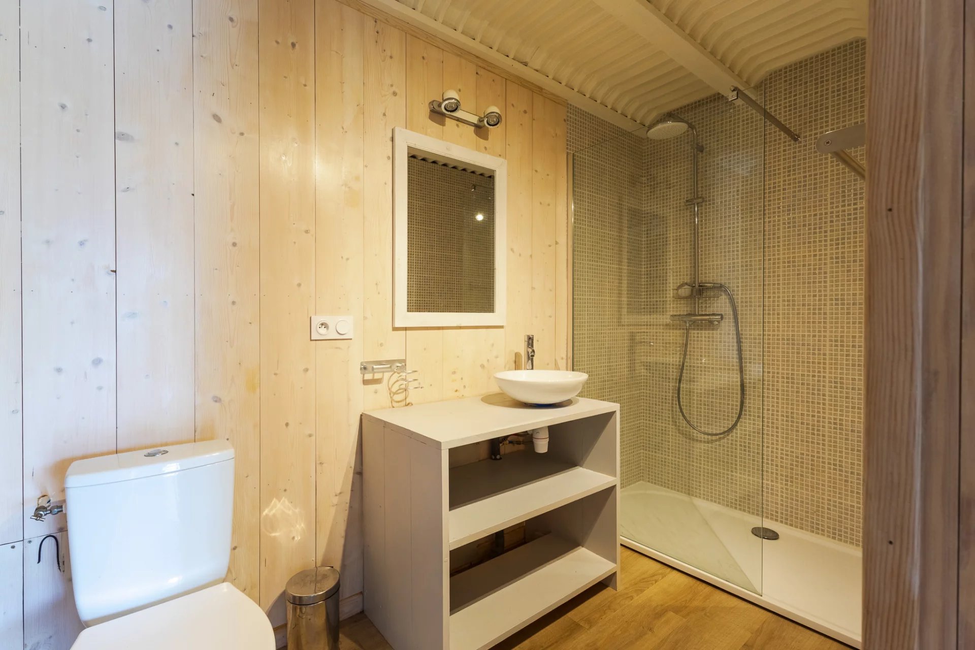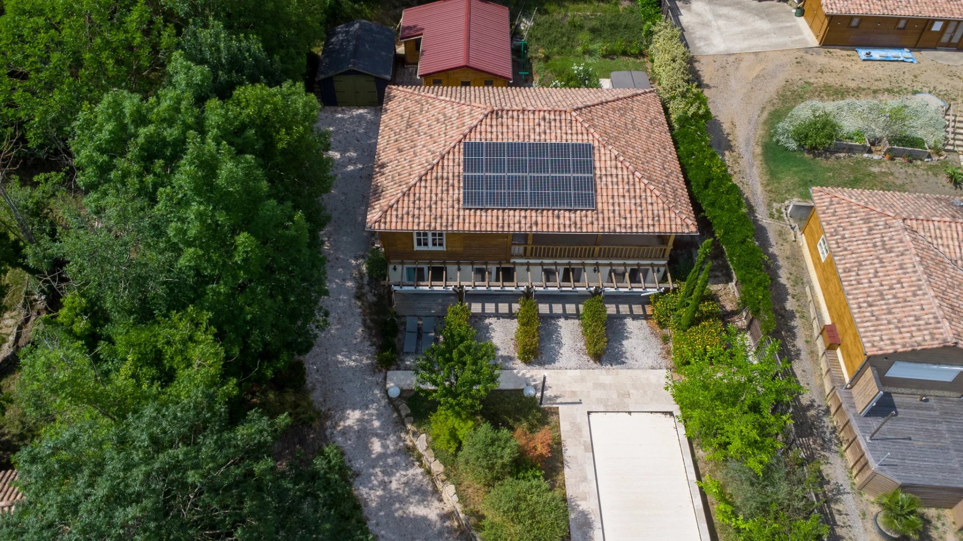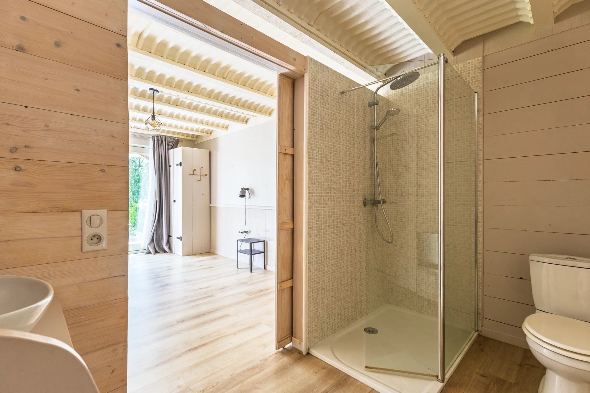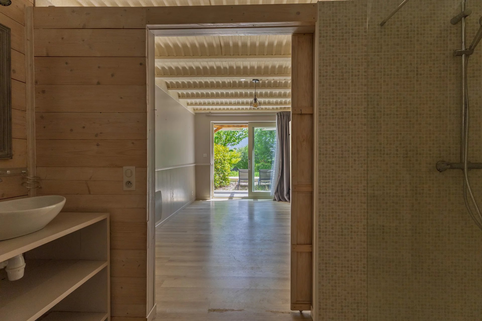 On the garden level, four bedrooms each with their own shower room, toilet and private terrace offer complete comfort—ideal for hosting family and friends, or for operating guest accommodations. A separate 45 m² heated wooden chalet and a 25 m² garage add further possibilities, whether for a workshop, office or additional lodging.