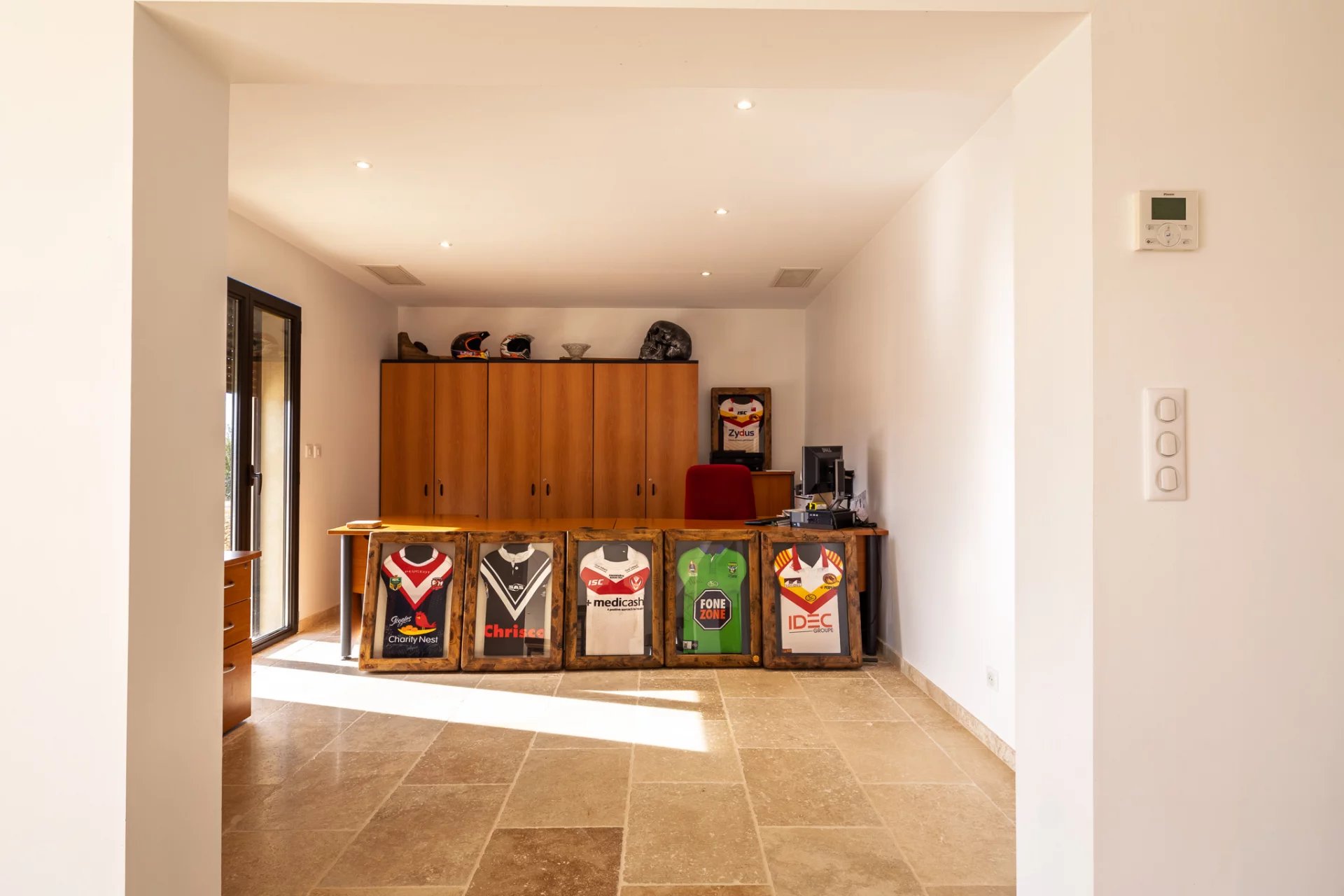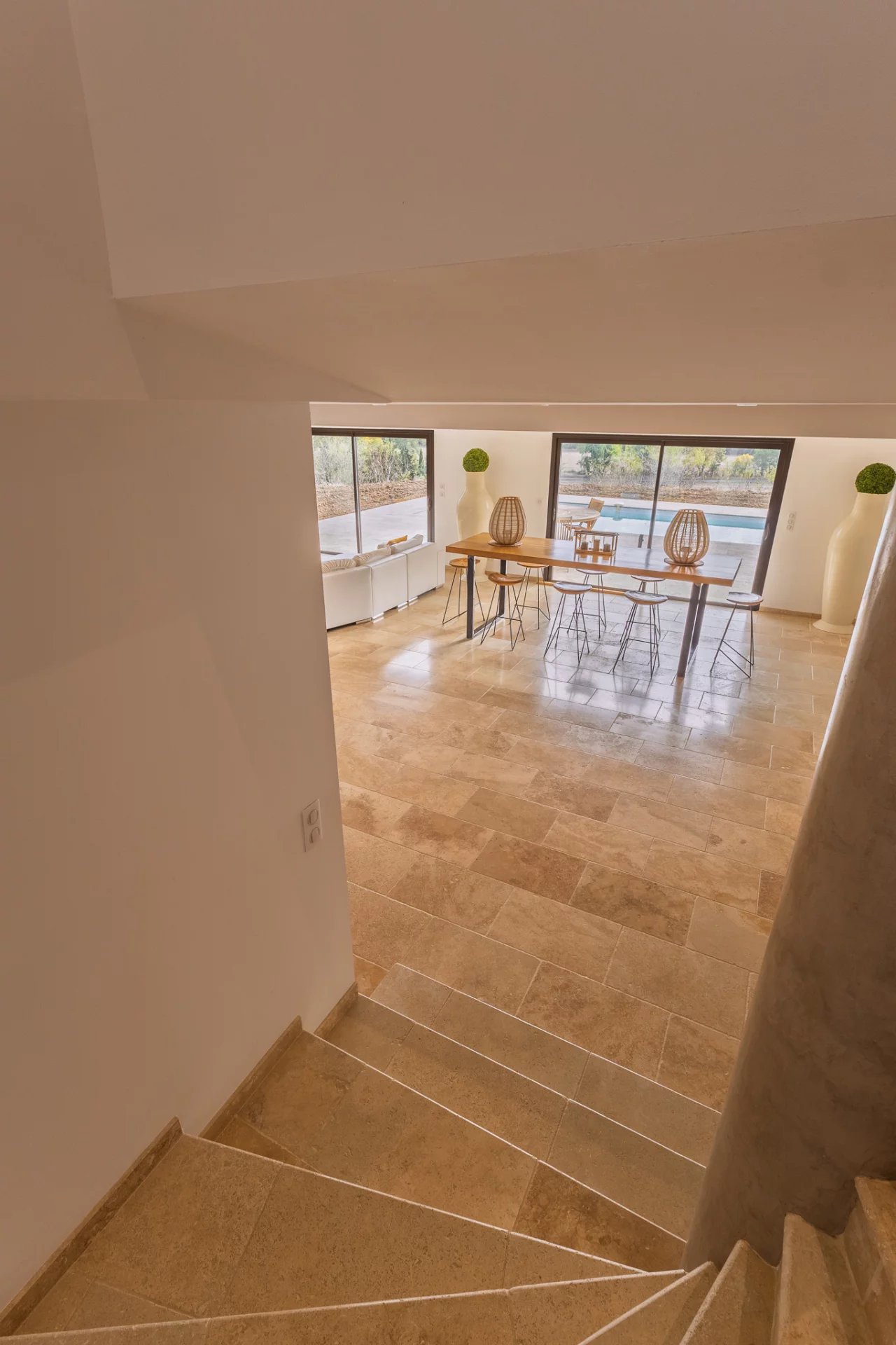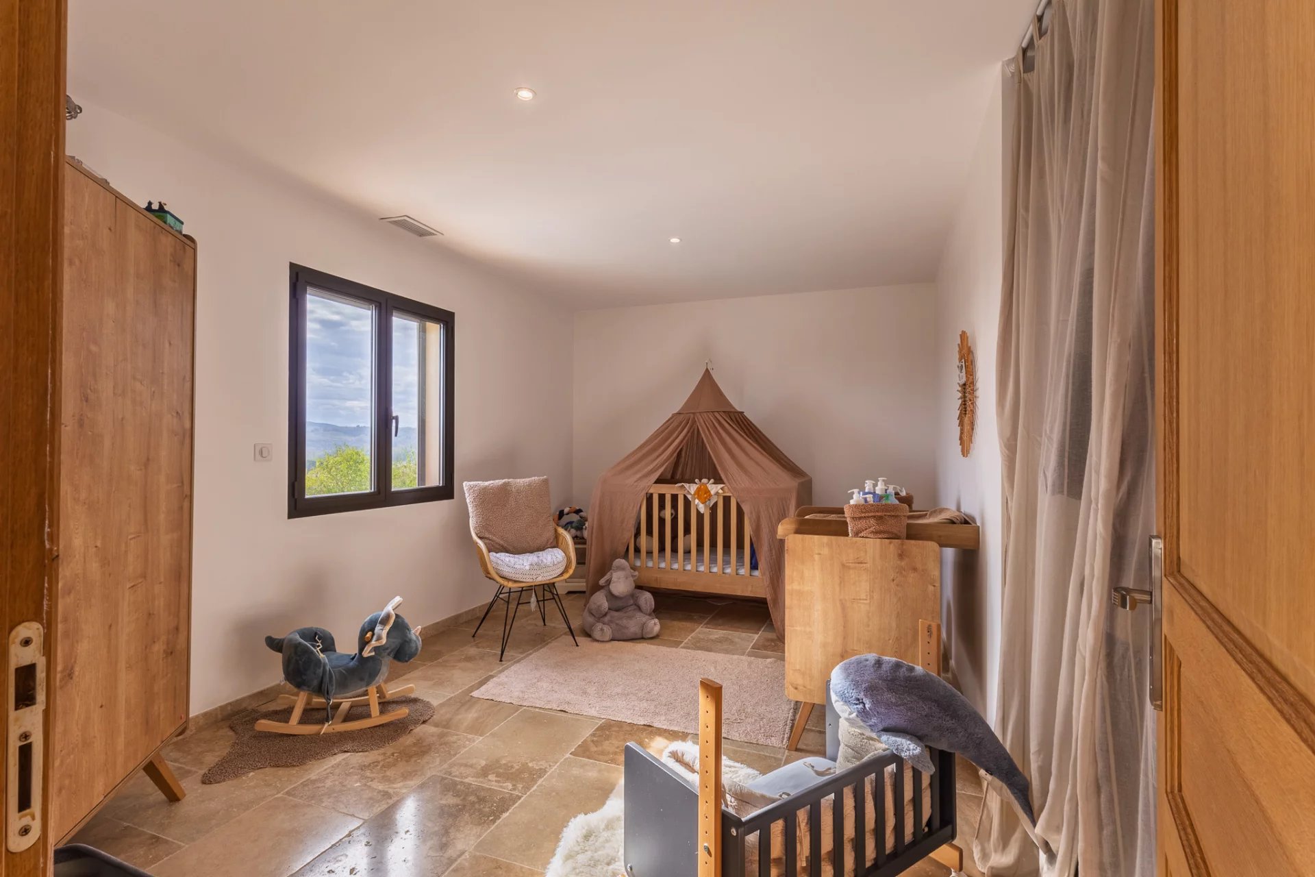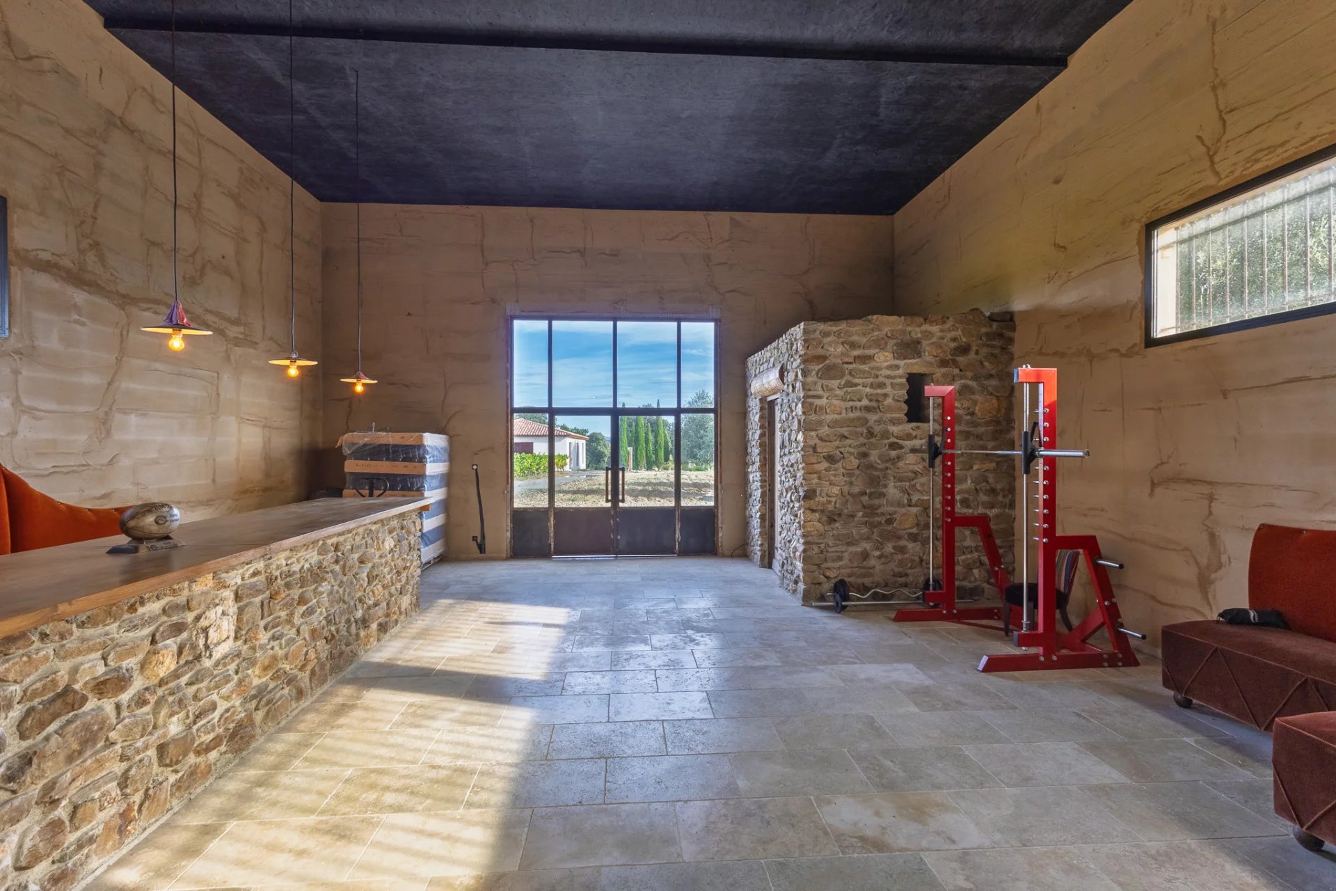 The property combines modern architecture with quality finishes and offers stunning views over the surrounding vineyards and the rolling hills of southern France.