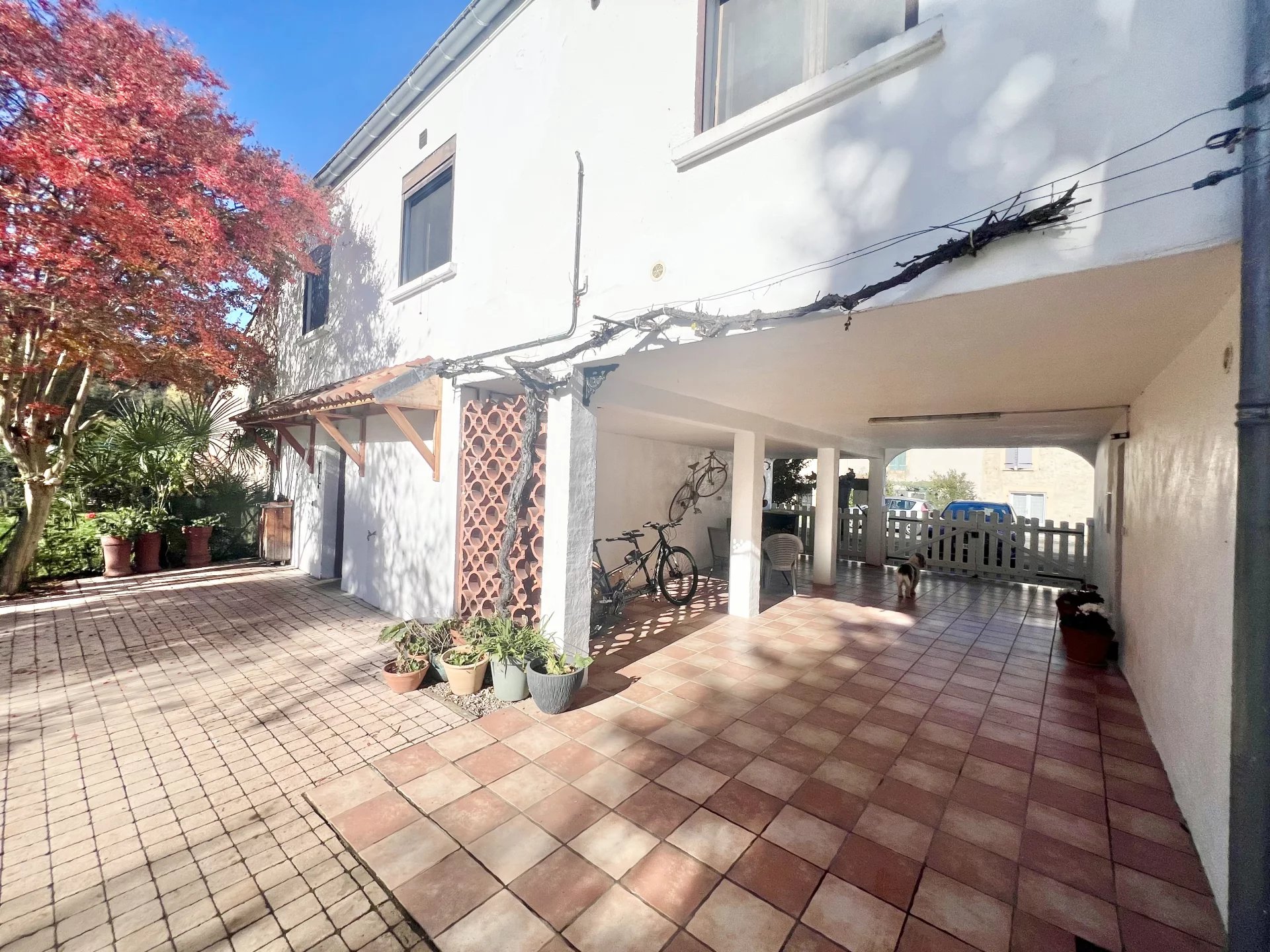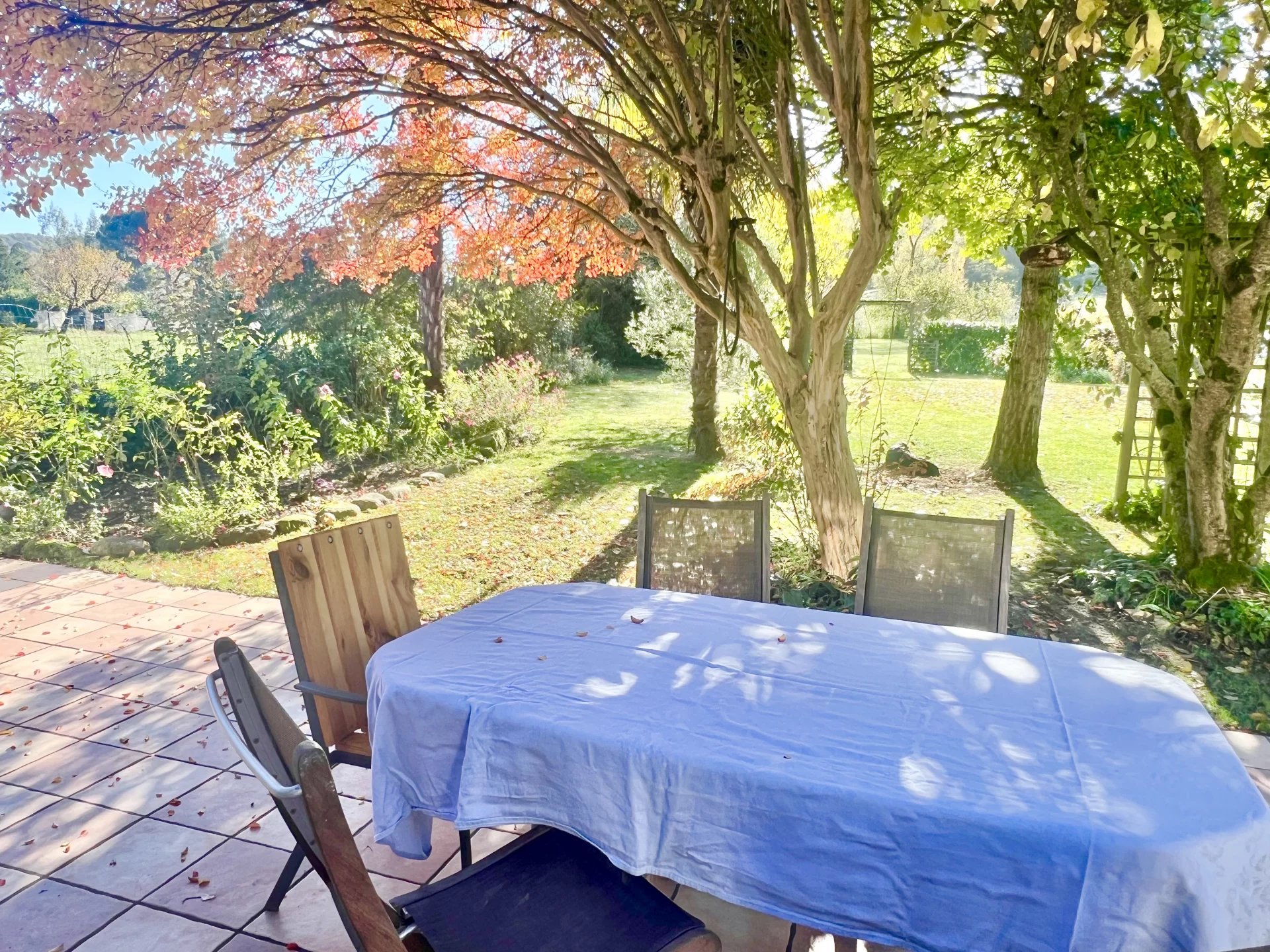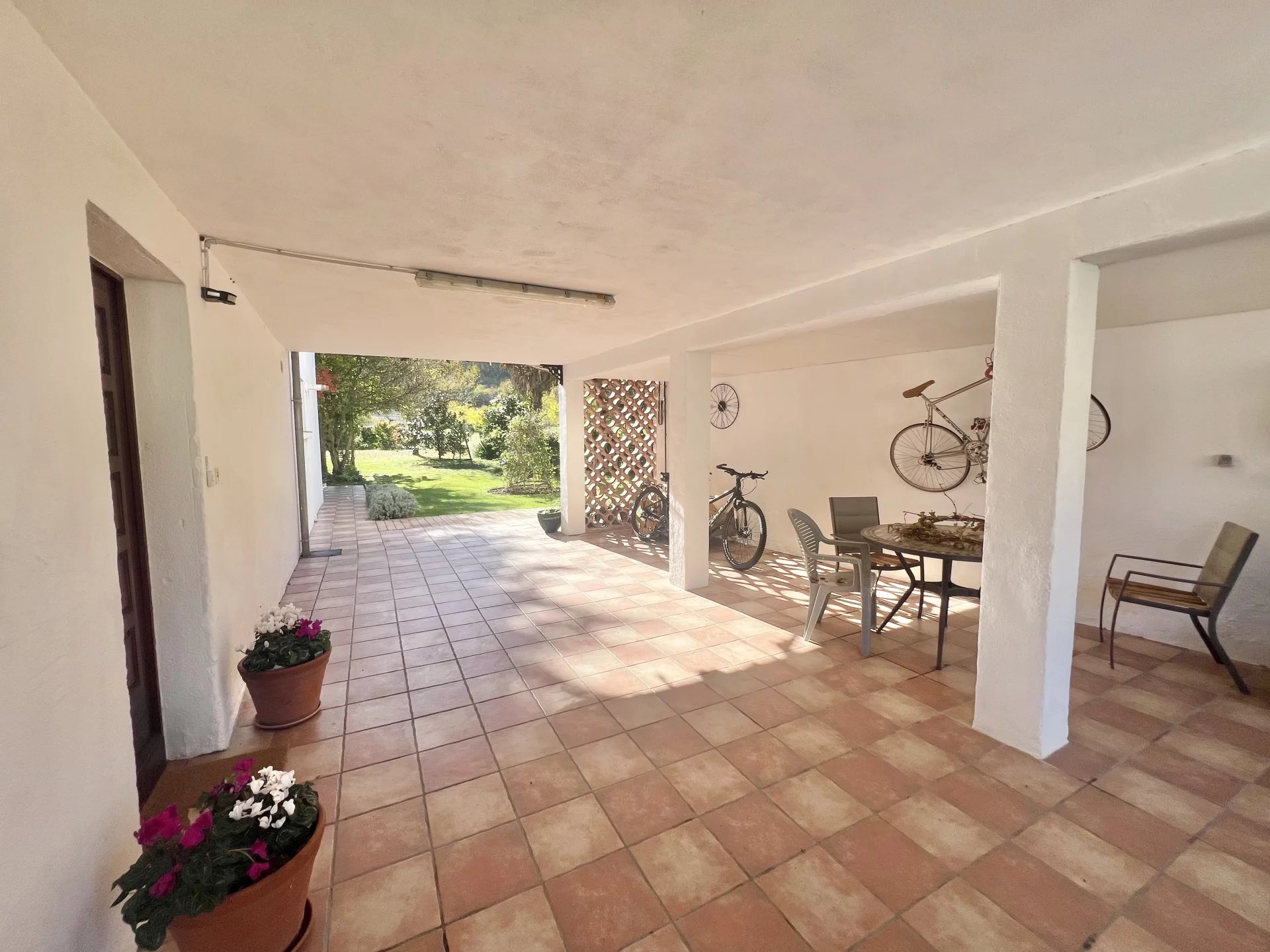 This spacious and excellently maintained house with a beautiful 1784 m² garden exudes peace and comfort and is located in a small hamlet just ten minutes from the charming town of Foix, with its famous castle and pleasant amenities. The house offers many possibilities thanks to a self-contained apartment on the ground floor, ideal for rental, guest rooms, a home office, or living with family. On the ground floor, there is an open kitchen with a living room of 21.6 m² where a wood stove provides warmth and ambiance, and from which you can directly step onto the terrace overlooking the garden and beautiful landscape. There is a bedroom of 8.7 m², a bathroom of 3 m², a separate toilet, and a hallway with a closet. In addition, there is a spacious office of 17.5 m² with a built-in closet and access to a large covered terrace of 42.6 m², making this space perfect for work, relaxation, or guests. On the first floor, you will find the residence with three comfortable bedrooms of 10.5 m², 13.3 m², and 14 m², each equipped with its own bathroom with shower and toilet. There is an open kitchen of 10.5 m², a bright dining room of 35 m², and a cozy living room of 17.5 m² with a built-in fireplace and access to a terrace of 18 m² with a stunning view of the surroundings. The house also features a workspace of 34.5 m² with integrated laundry facilities and a garden studio of 15 m² for storage. The roof is equipped with solar panels for hot water, and the completely renewed and insulated roof, together with city gas heating, ensures a comfortable living climate. All windows have electric shutters, except those at the terrace and veranda. The entire property is very well maintained and ready to move in. The location is ideal for nature lovers, with walking trails just around the corner and the tranquility of the countryside, yet still close to everything you need. Foix and the highway are a ten-minute drive away, Toulouse is one hour away, and the ski resorts are about an hour and a half away. This house offers a unique combination of space, tranquility, views, and versatility, and is a perfect place for those who want to enjoy the French lifestyle with plenty of opportunities and living pleasure.