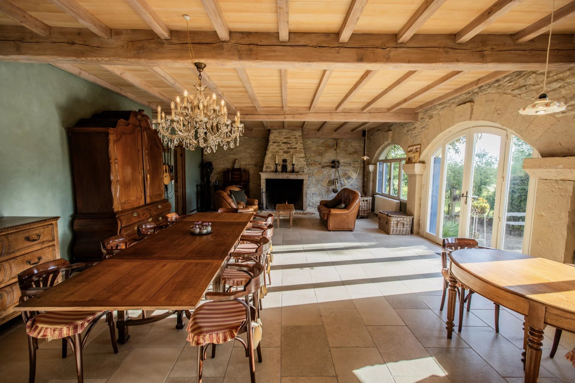 The 1.35-hectare estate offers 420 m² of living space, including five cosy guest rooms and a separate studio for the owners. Inside, the bright and comfortable rooms feature quality materials, high ceilings, original floors and modern bathrooms.