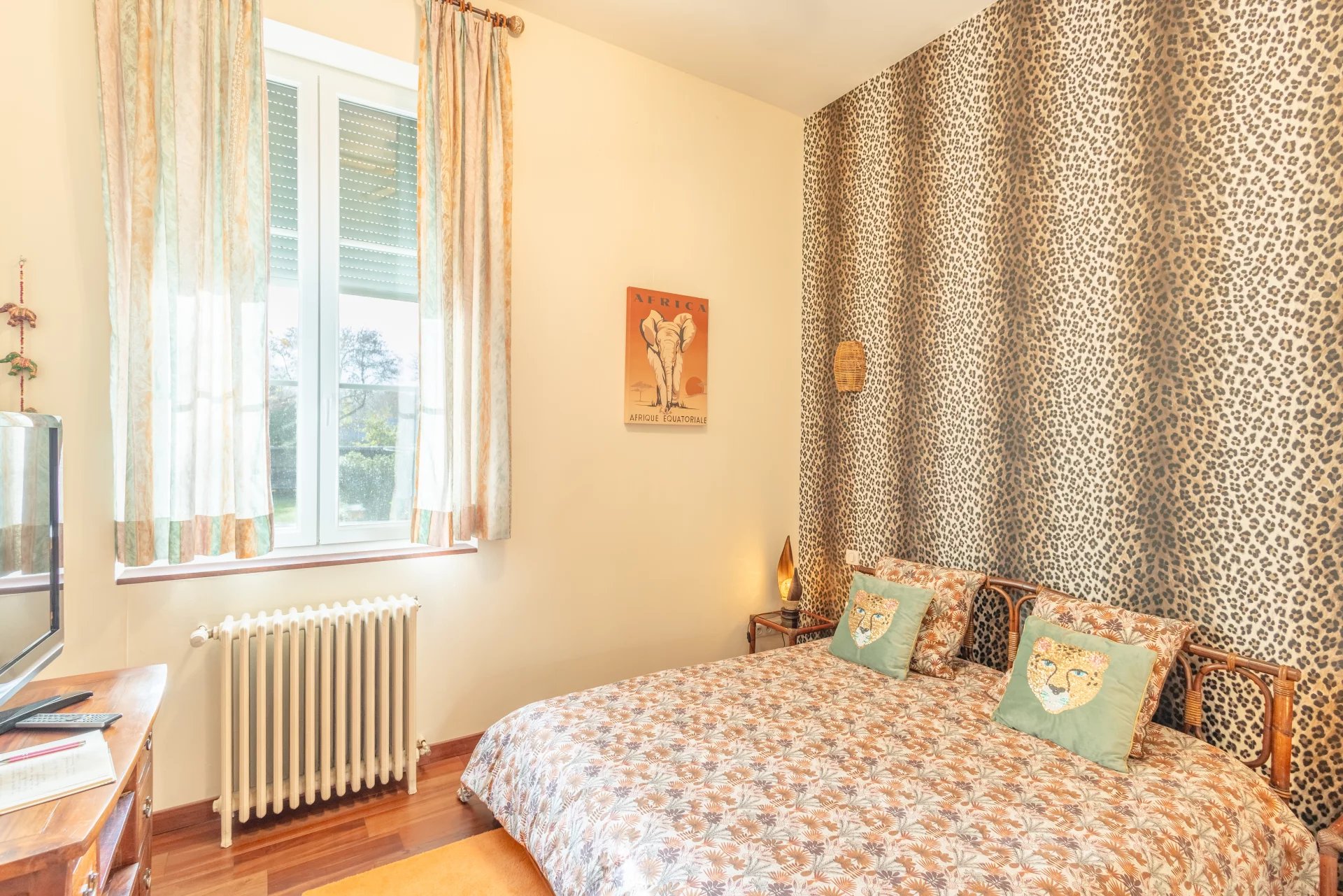 Built over three levels, it offers approximately 425m² of living space and sits on a wooded and enclosed plot of about 5830 m². The house is distinguished by its exceptional decorative universe. Each bedroom has its own theme, carefully staged, with decor objects selected with impeccable taste to enhance the chosen atmosphere.