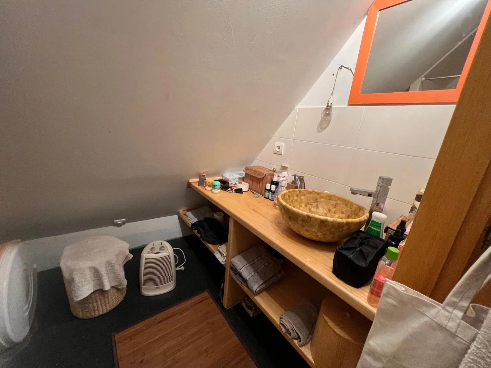 The top floor houses a small shower room, a second toilet and a cosy bedroom with its own balcony.