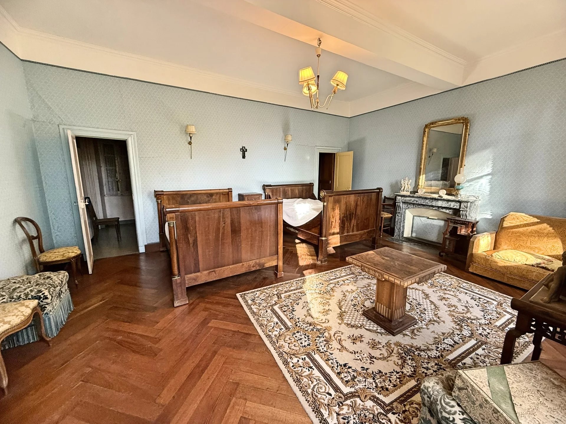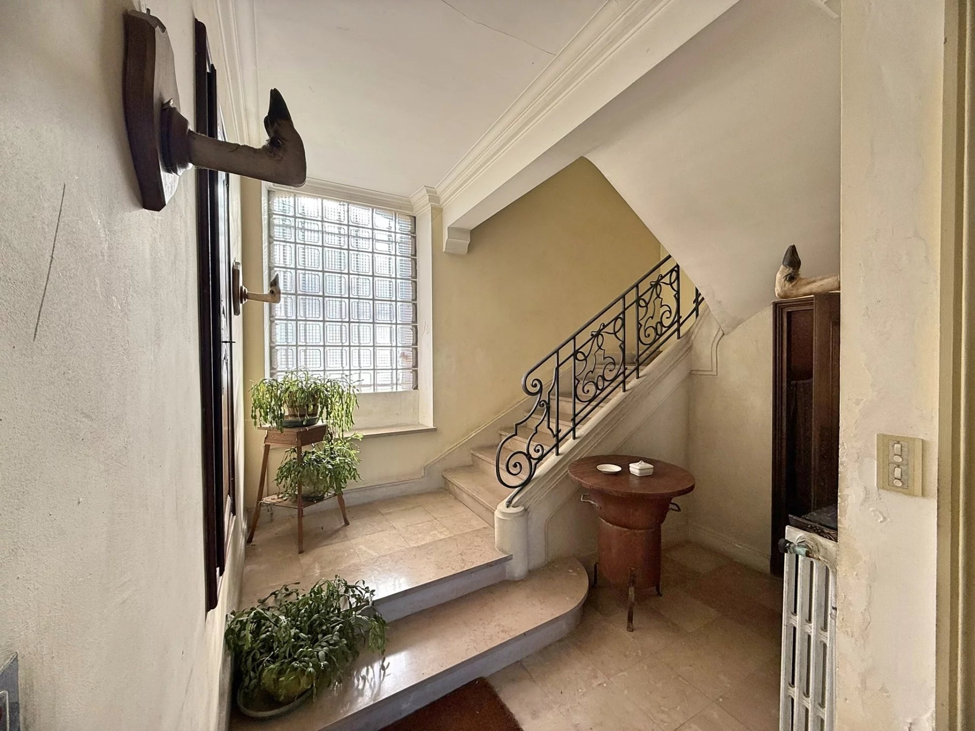 The garden level consists of a living room, a dining room, an office and a kitchen. On the upper floor there are six bedrooms and a bathroom. The original elements of the bourgeois style of the 19th century have been preserved: herringbone parquet flooring, cement tiles, mouldings, fireplaces and a marble staircase with wrought-iron railing. The presence of two staircases even makes it possible to create an independent apartment with two bedrooms and a private entrance.