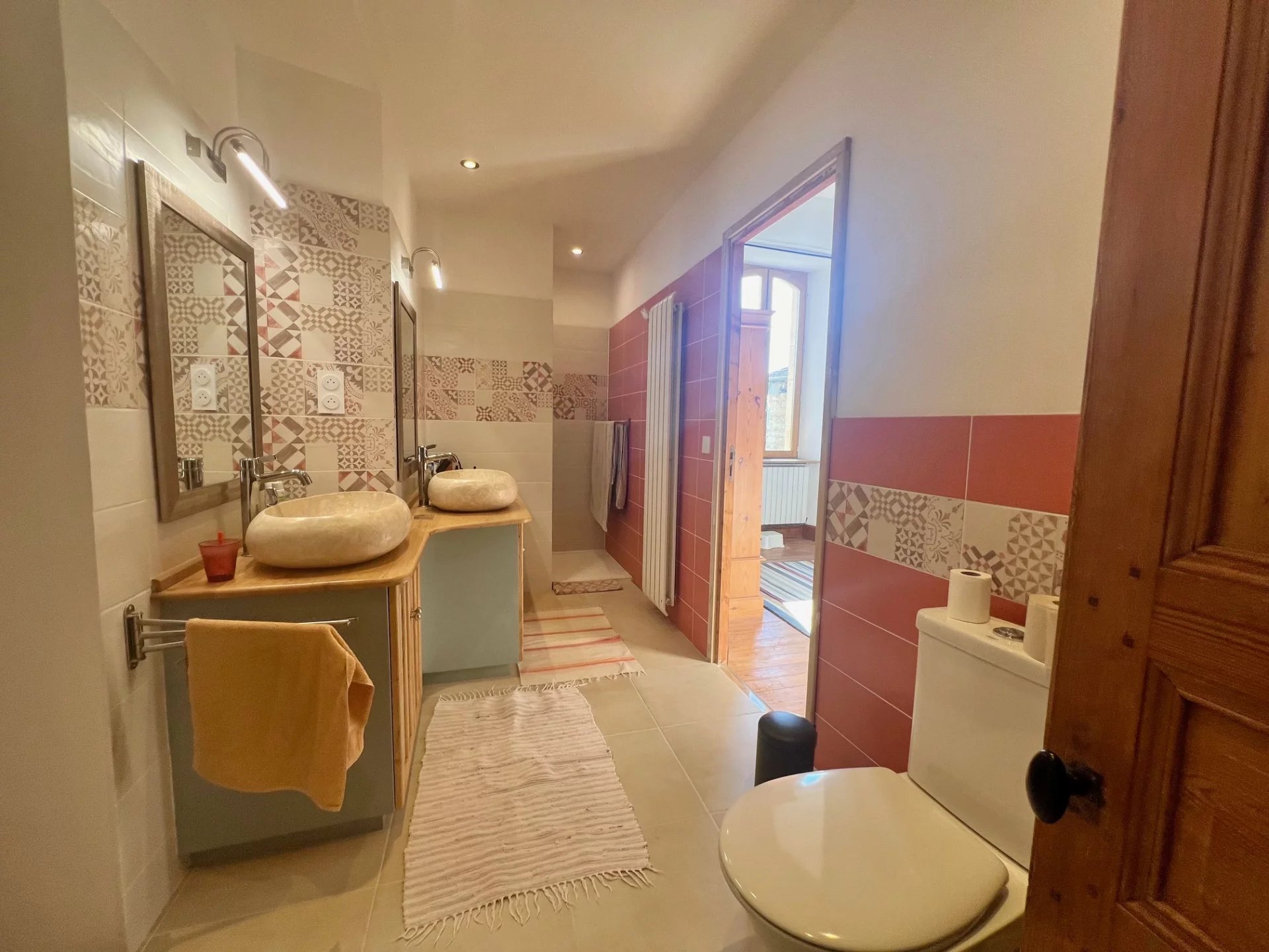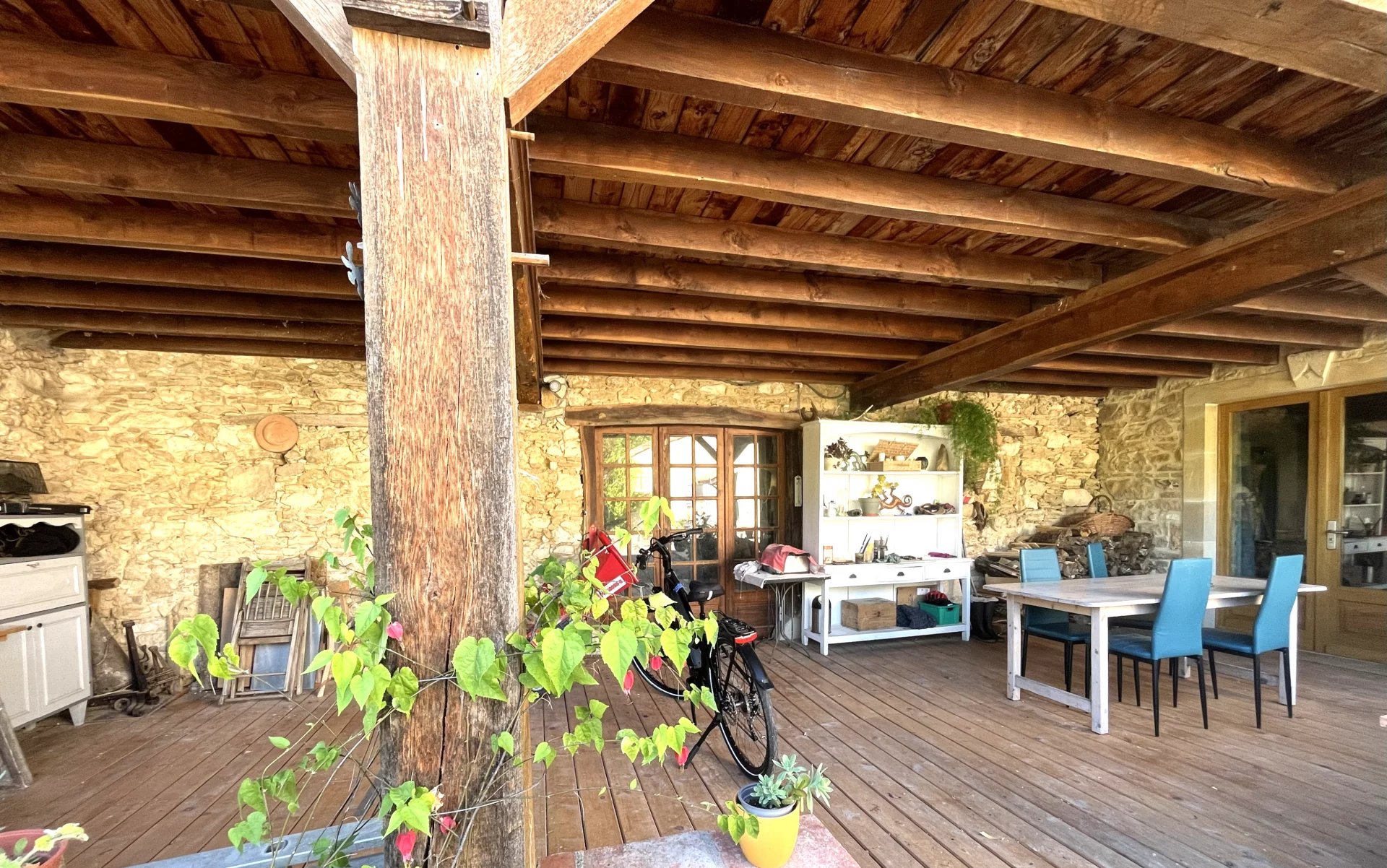 The main house, entirely renovated, offers 200 m² of living space. It comprises a vast 76 m² living-dining room, a 15 m² kitchen and a laundry room with toilet (12 m²). First floor: three bedrooms, a bathroom with walk-in shower and toilet, and a mezzanine opening onto the living room. The original terracotta floor tiles are in excellent condition, and the house boasts a number of fine old features: half-timbering, wood and 80 cm stone walls.