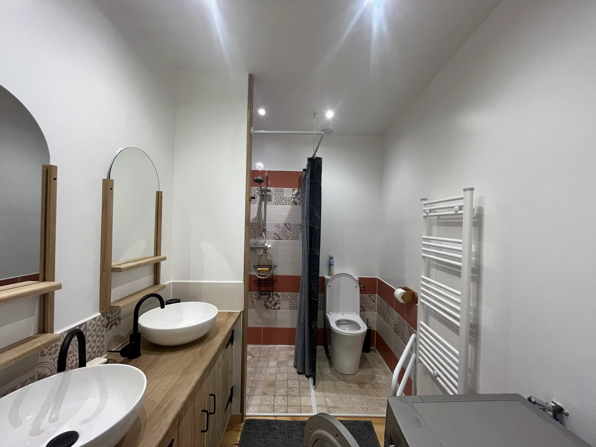 The second house, adjoining but totally independent (60 m²), comprises two bedrooms, a dining room, kitchen, sitting area and bathroom with walk-in shower and toilet. It has recently been completely renovated. At the rear, non-communicating: workshop, attic and two storage spaces.