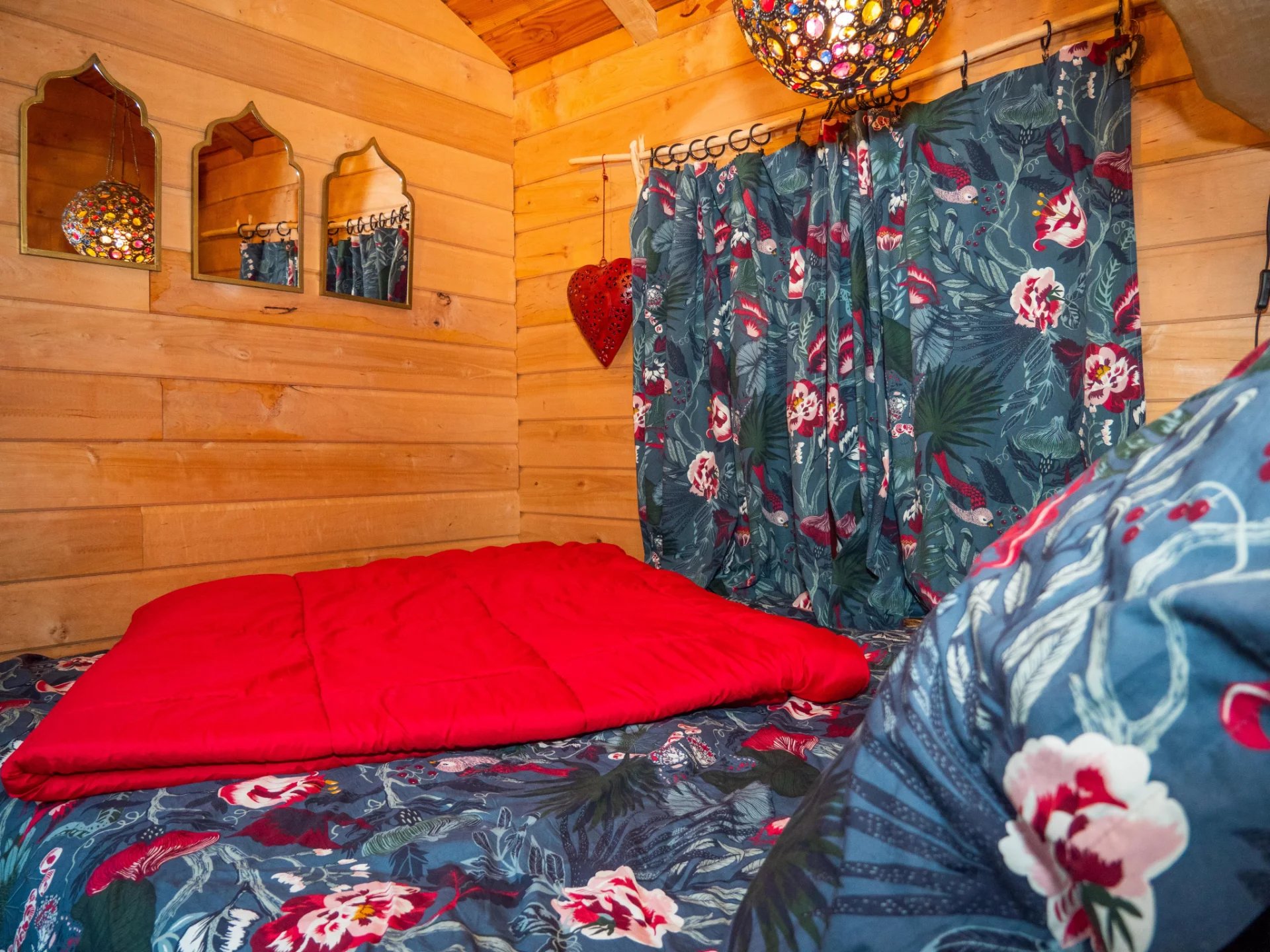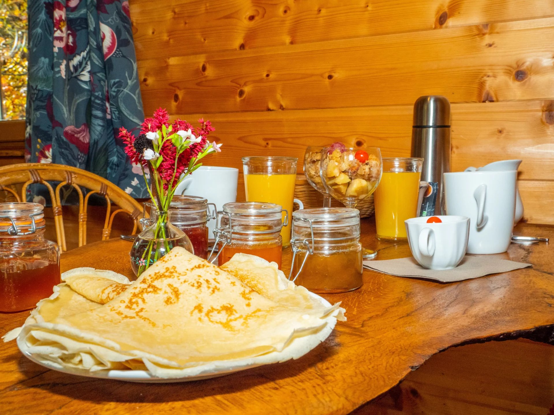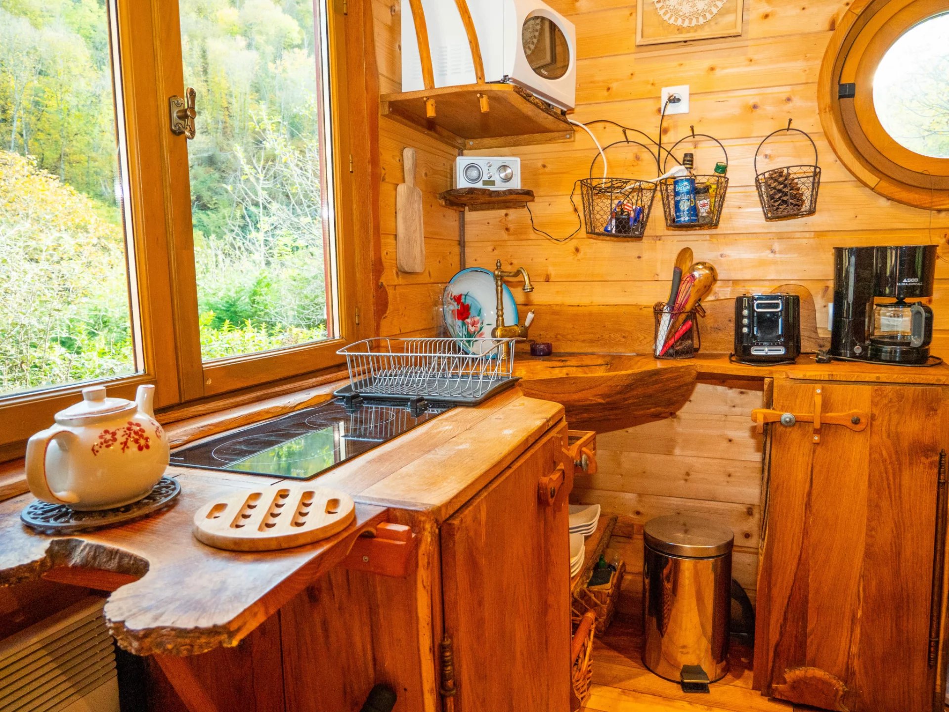 De twee woonwagens zijn comfortabel en smaakvol ingericht, volledig gemaakt van hout (een dozijn verschillende soorten), zowel binnen als buiten, inclusief het meubilair en de wastafels. Ze kijken uit op de Moulin in de bloemrijke weide, waarbij de privacy van de gasten gewaarborgd blijft.