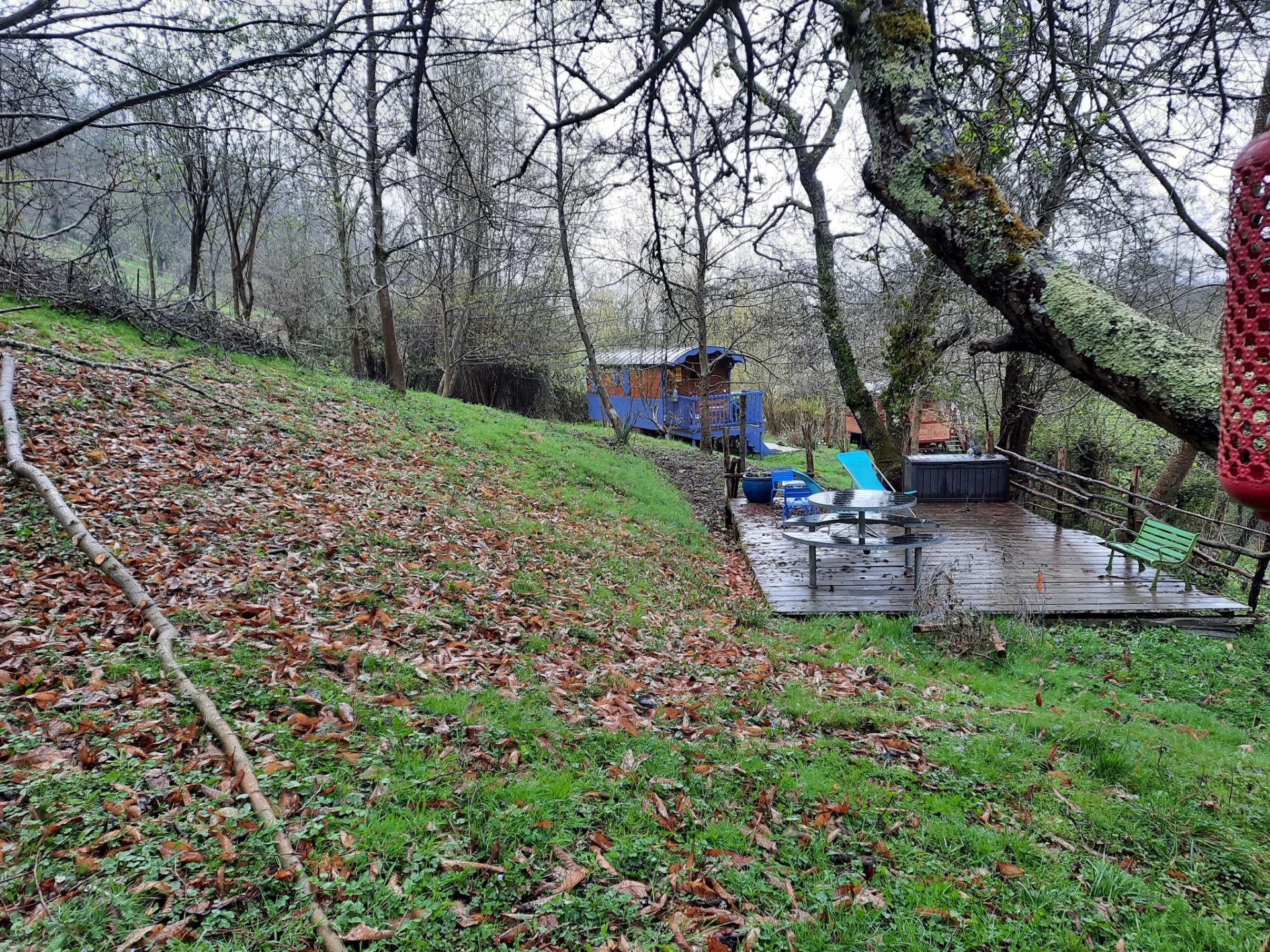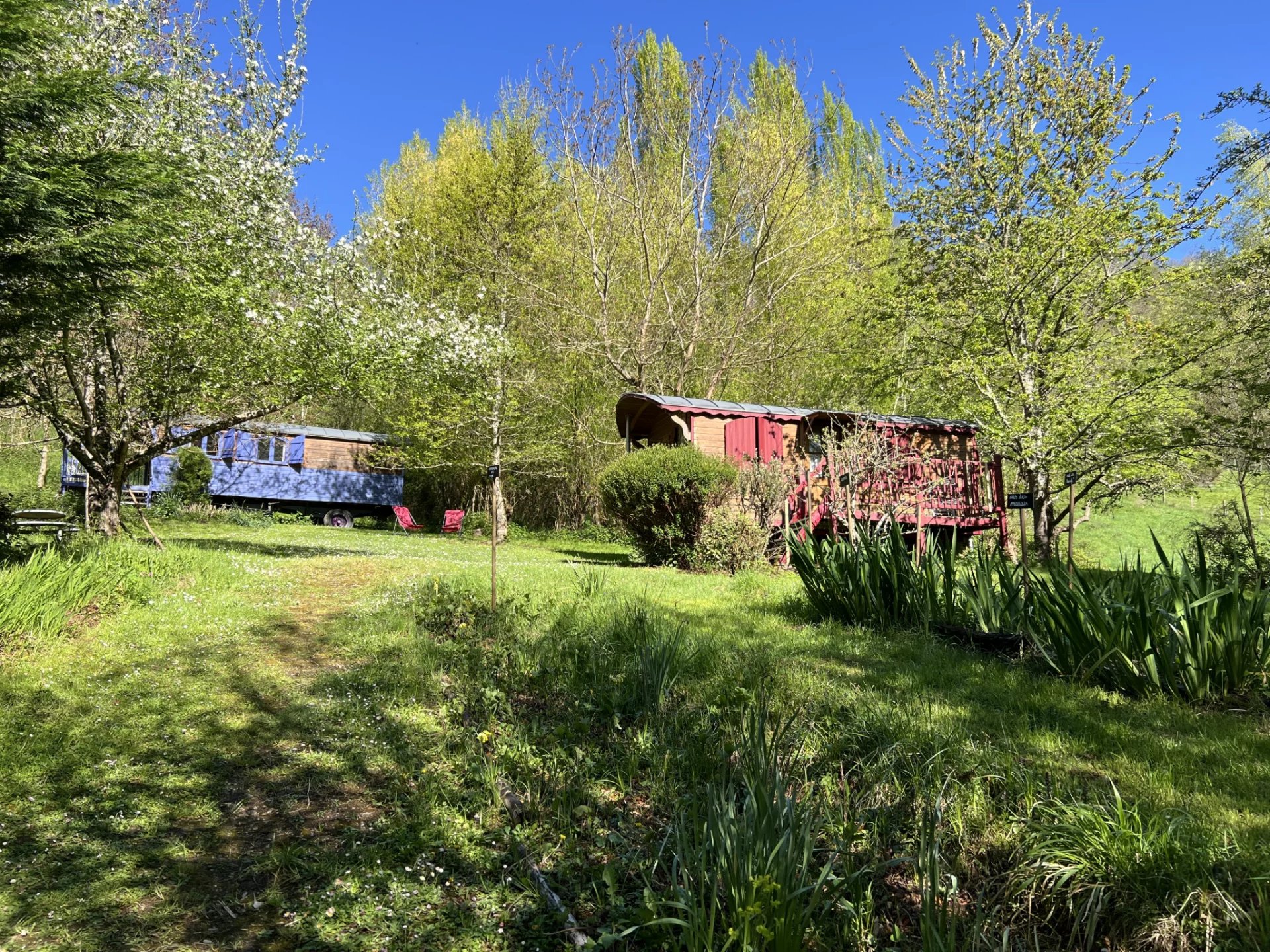 Het landgoed strekt zich uit langs beide kanten van de rivier, met een moestuin, weiden, een oude boomgaard, een stukje bos, een vijver, verschillende bronnen en een klein strandje. In dit kleine groene paradijs hebben de eigenaren twee prachtige, volledig uitgeruste houten woonwagens geplaatst als accommodatie voor gasten of voor hun telewerkactiviteiten.Het bedrijf is flexibel, afhankelijk van de plannen van de nieuwe eigenaren, en kan worden gerund als een gastenverblijf, een of twee gîtes en de twee roulottes.